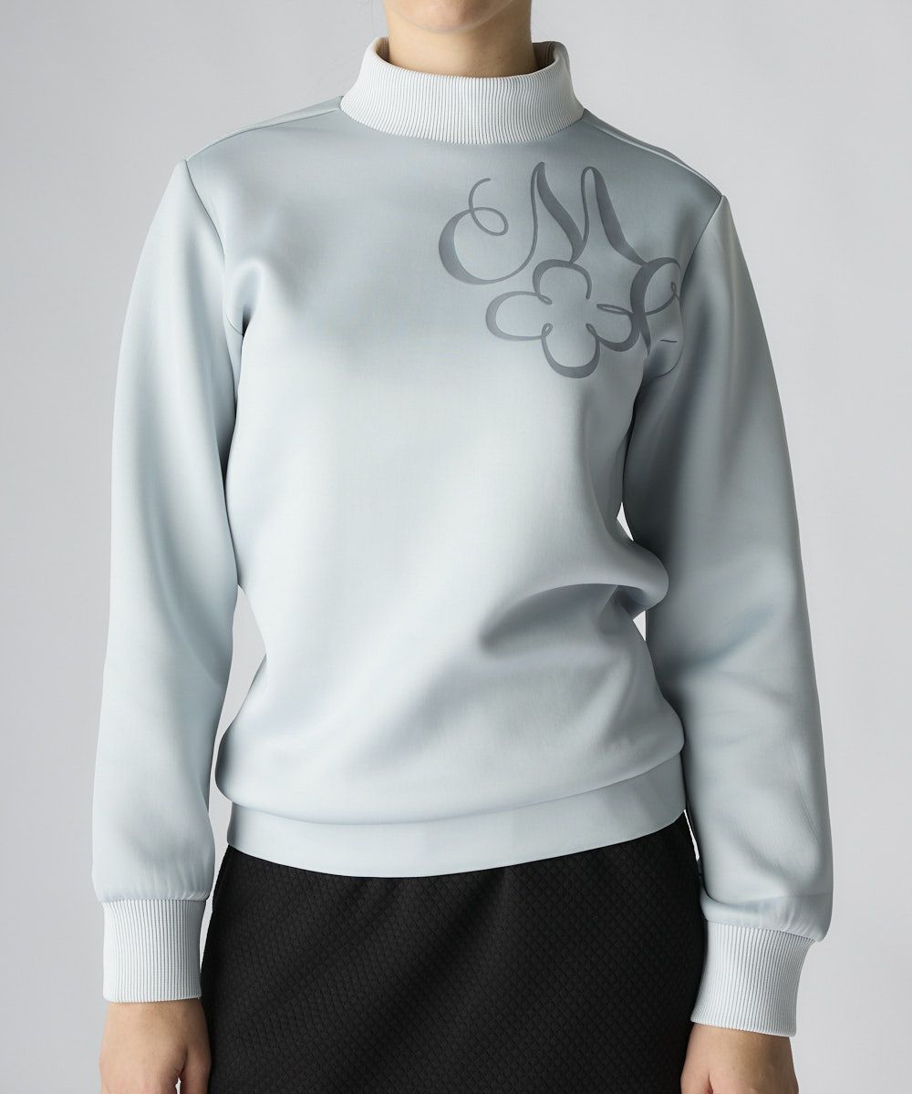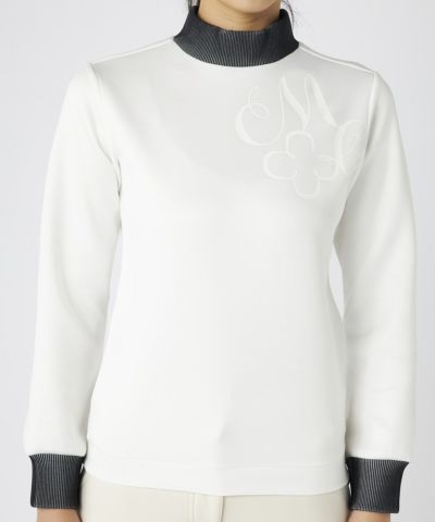 レディース ワンポイントロゴ長袖モックネックプルオーバー