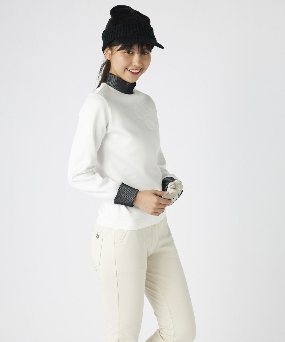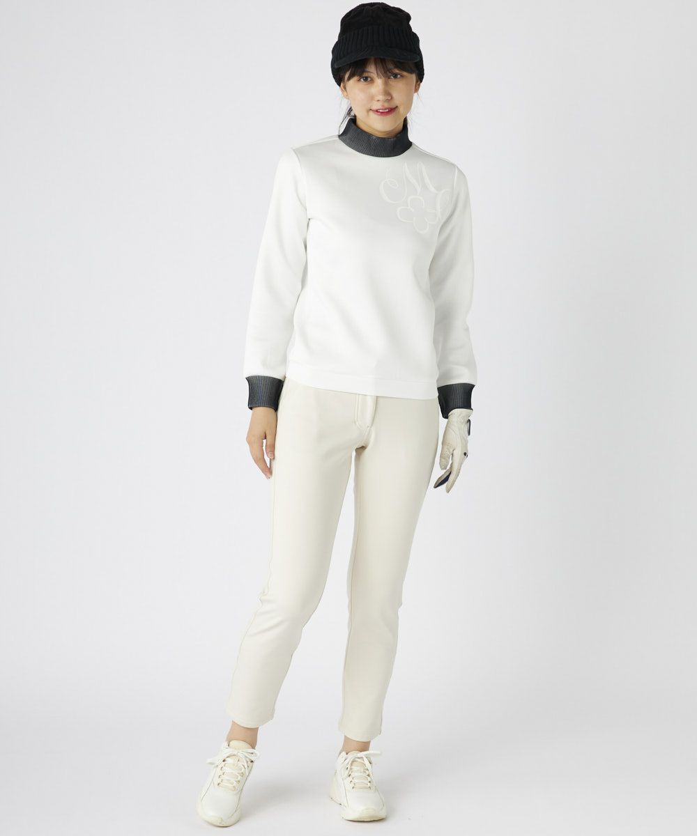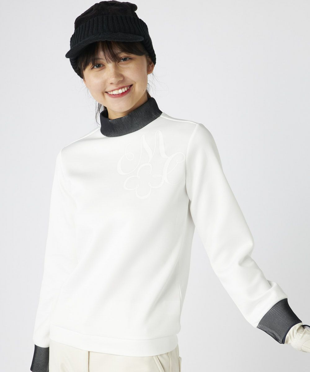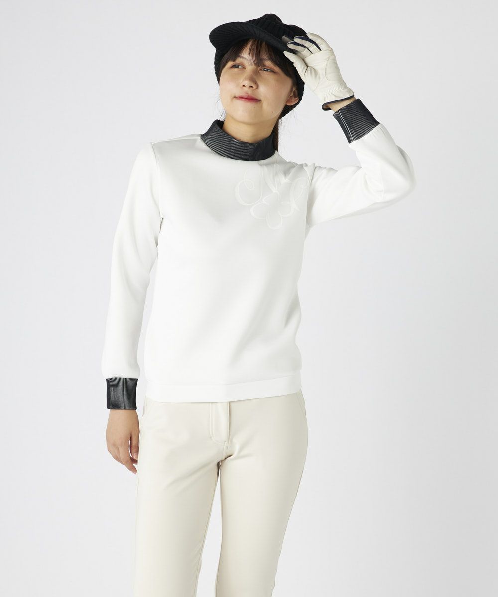 レディース ワンポイントロゴ長袖モックネックプルオーバー