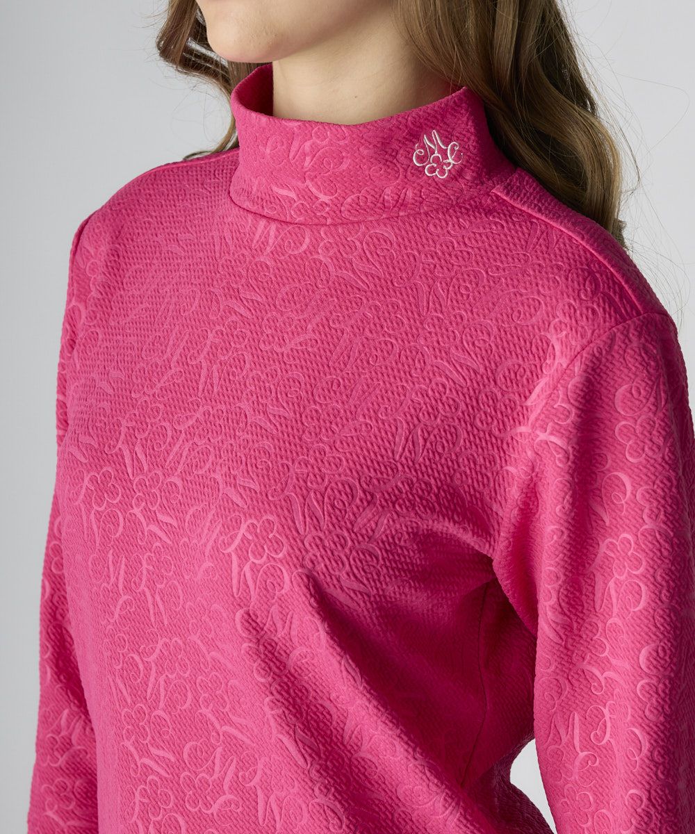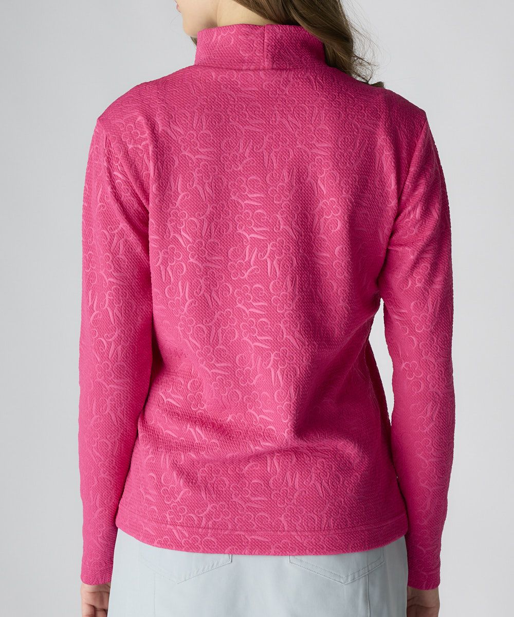 レディース ふくれジャガード長袖モックネックシャツ