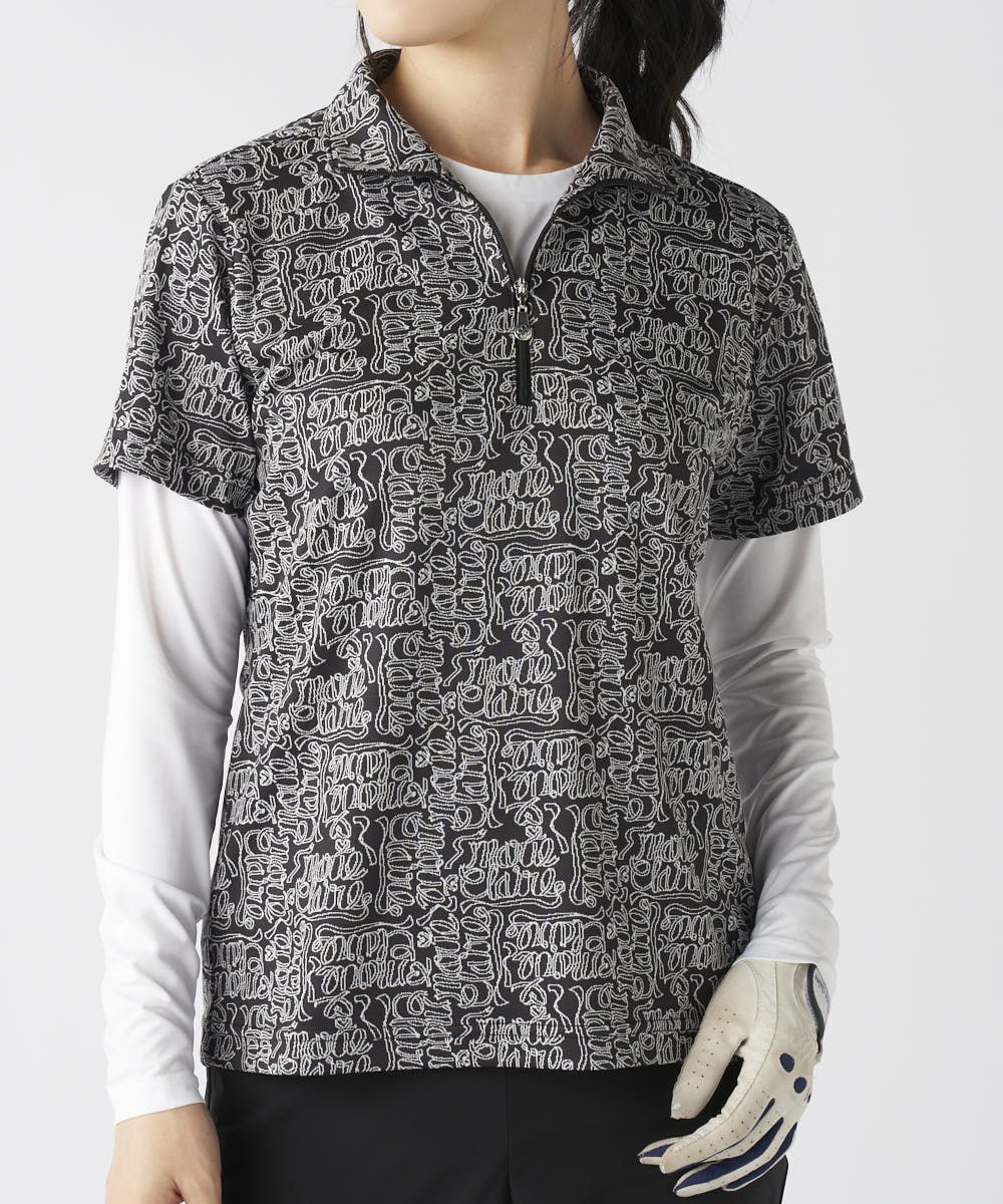 レディース リボンロゴ半袖ジップシャツ