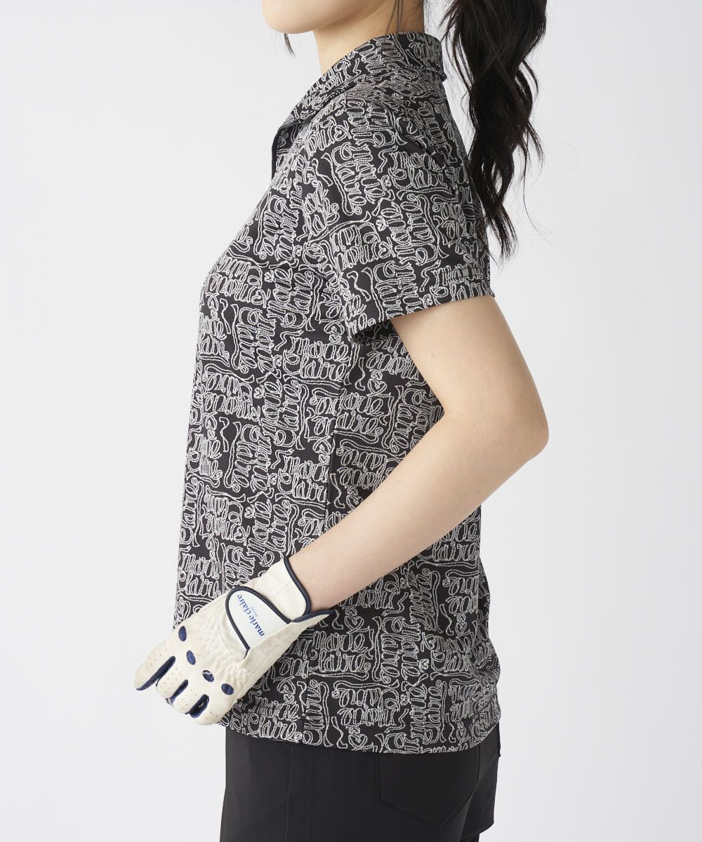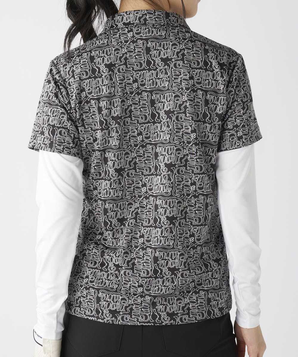 大胆なリボンロゴ柄が印象的なジップシャツ。