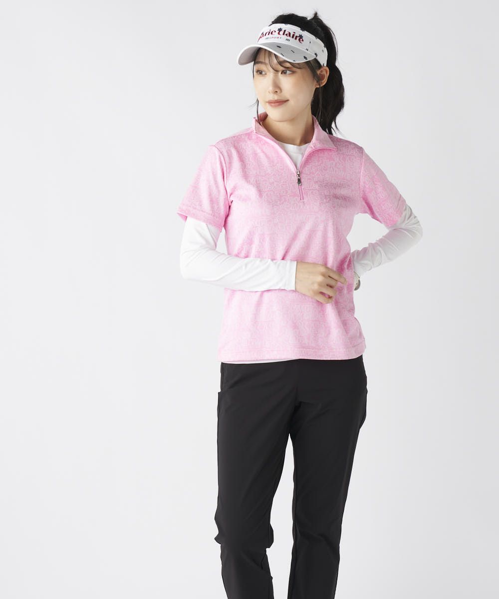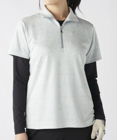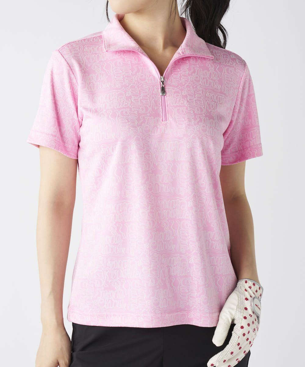 レディース リボンロゴ半袖ジップシャツ