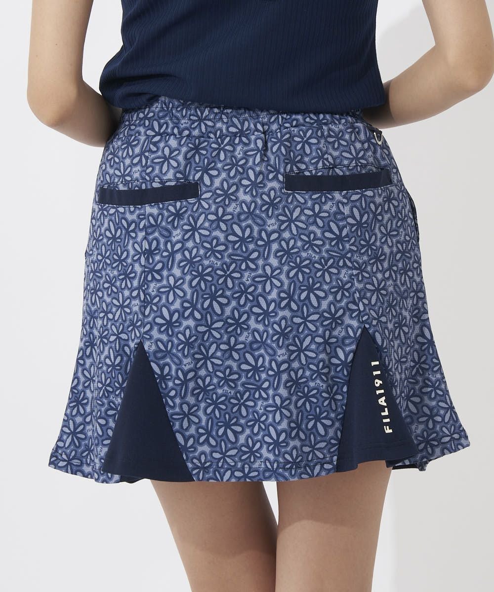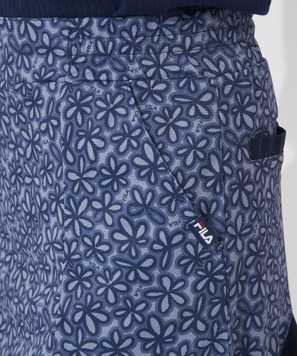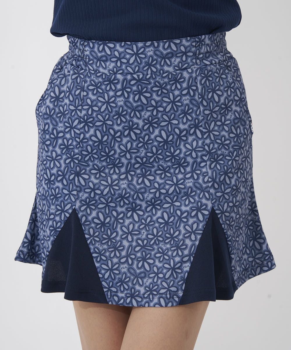 マチ部分の配色切替がアクセントになった、春らしいフラワープリントのスカート。ちらっと見えても安心な見 せパン仕様です。