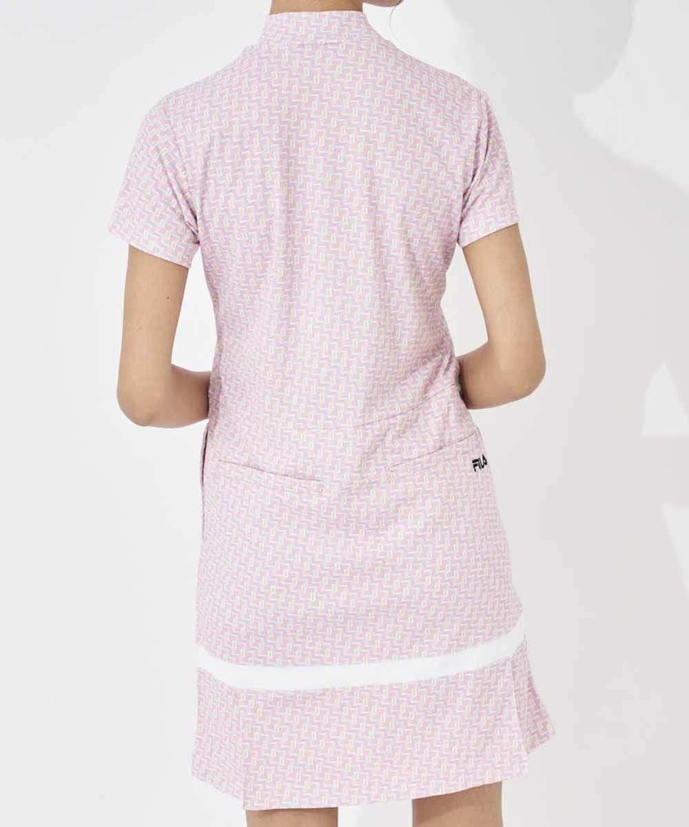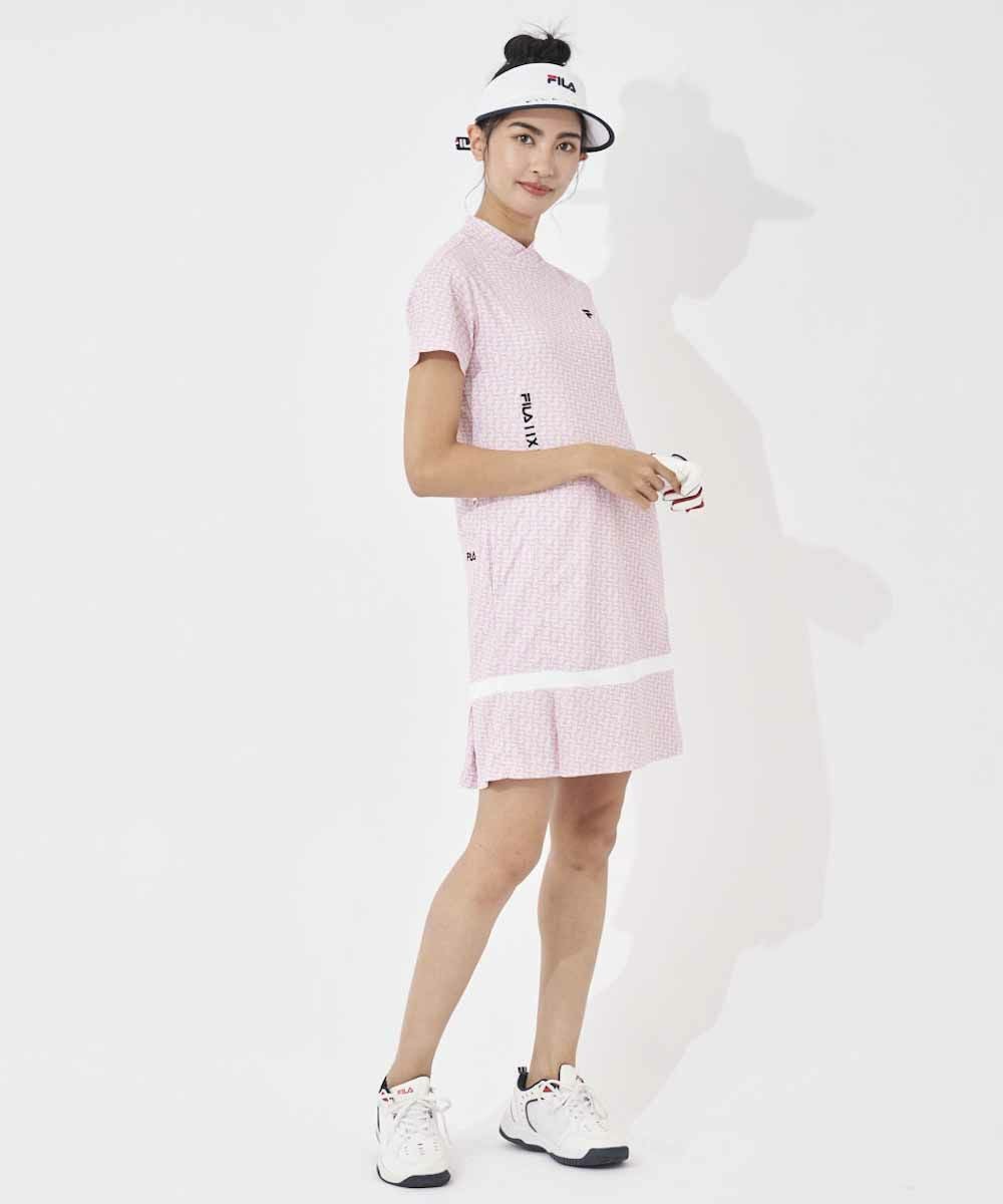 レトロな小つき柄をスポーティなデザインに落とし込んだ、変形モックネックのワンピース。スカート裾にプリーツを取り入れ、かわいらしいイメージをプラスしました。接触冷感、吸汗速乾でいつでもサラッとした着心地、さらにUVカットも備えた機能性素材なので、夏のゴルフも快適にプレーしていただけます。