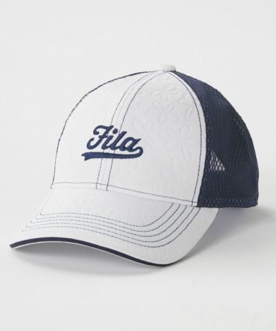 メッシュ調素材にフラワー柄をエンボス加工したキャップです。締め付けにくく、軽量でかぶり心地の良い柔 らかなツバを採用しました。ビンカワには吸汗速乾素材を使用しております。