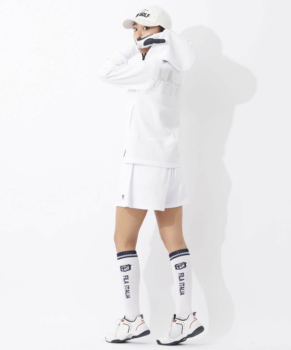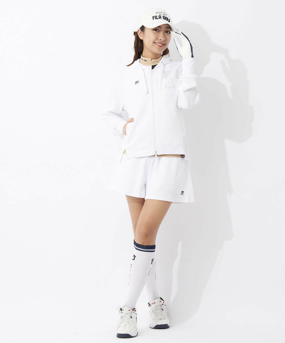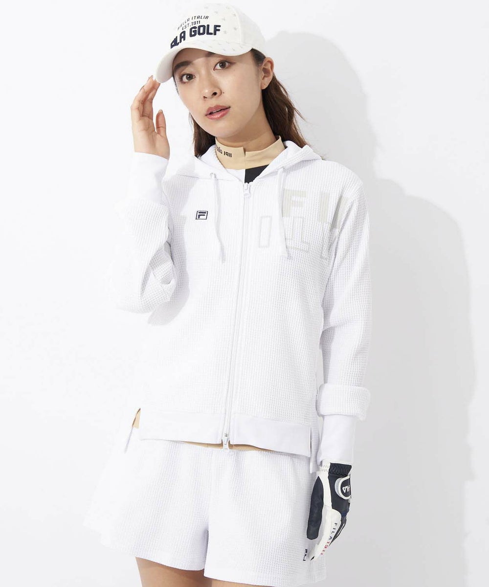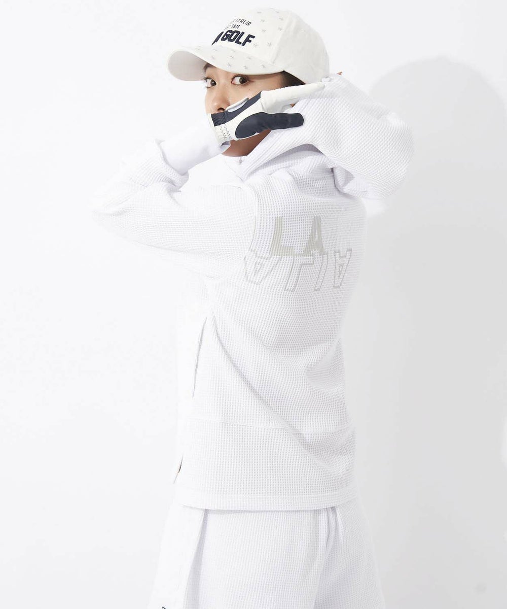 寒暖差のある春先から活躍する、表面感のあるワッフル素材を使用したパーカー。裾にスリットと前後差をつけた。動きのあるシルエットです。