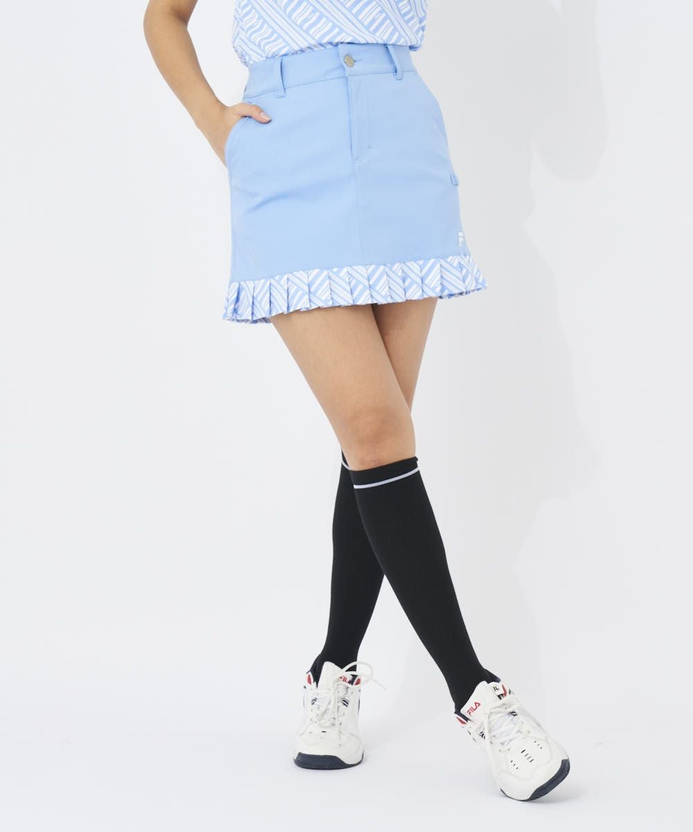 裾のプリント柄プリーツで可愛らしさを添えたデザインのスカート。