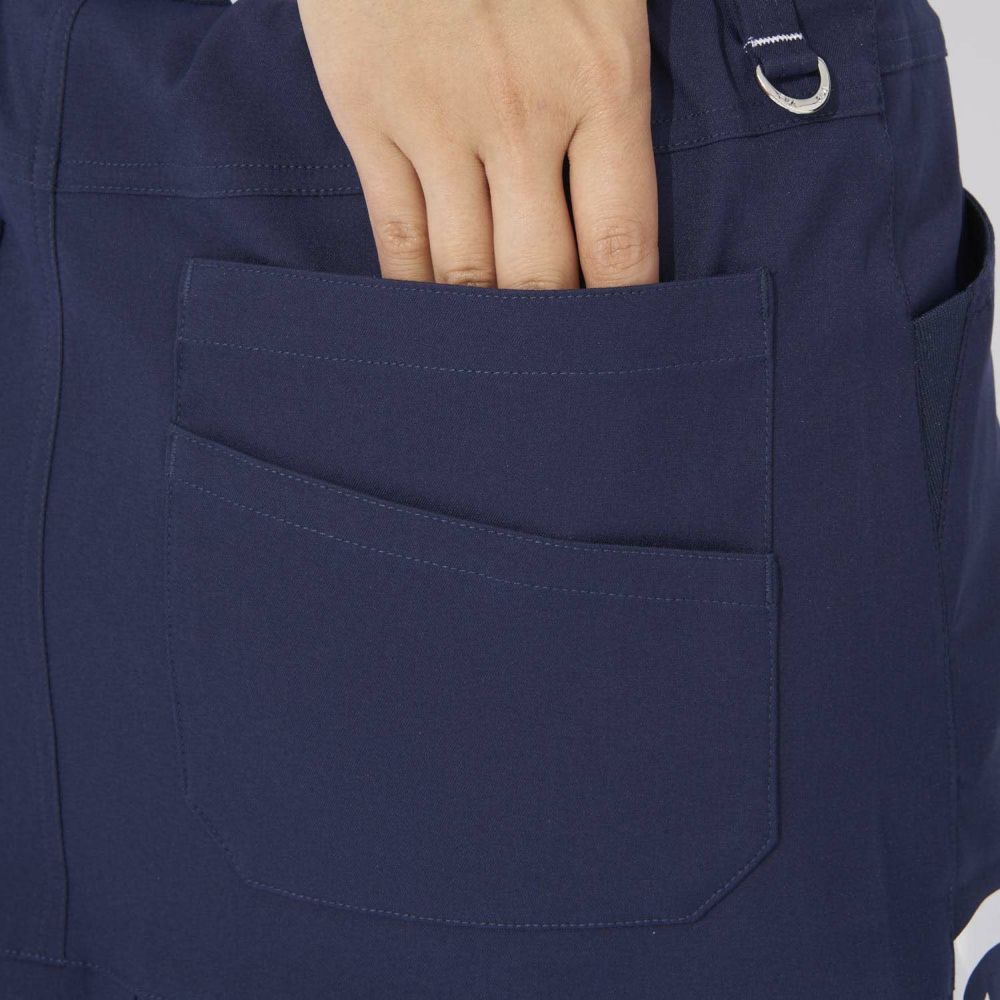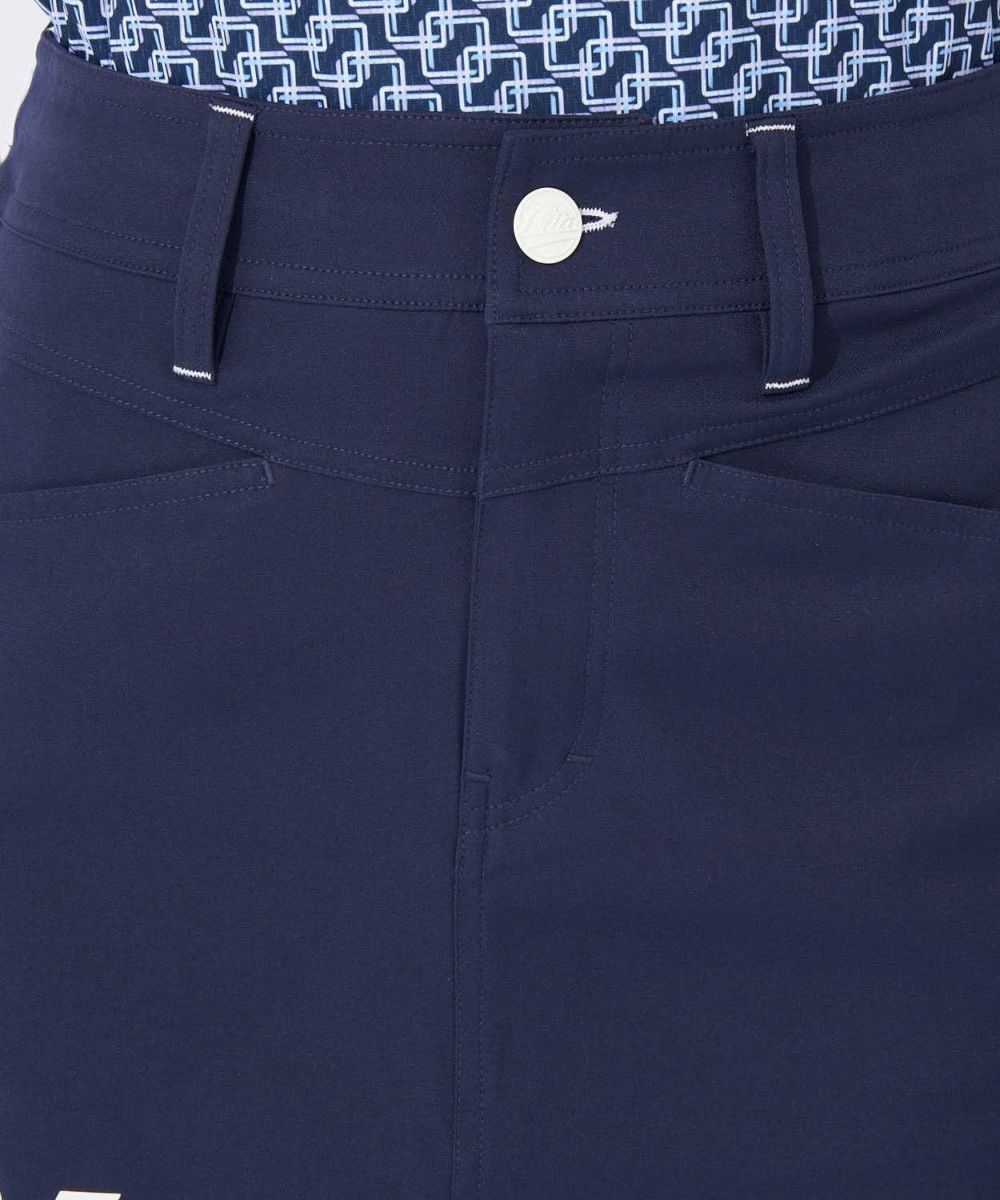 ストレッチ性に富んだ吸水撥水素材を使用。裾スリットと後ろプリーツで女性らしい魅力をプラス。右後ろポケットは使い分けに便利な二重仕様。