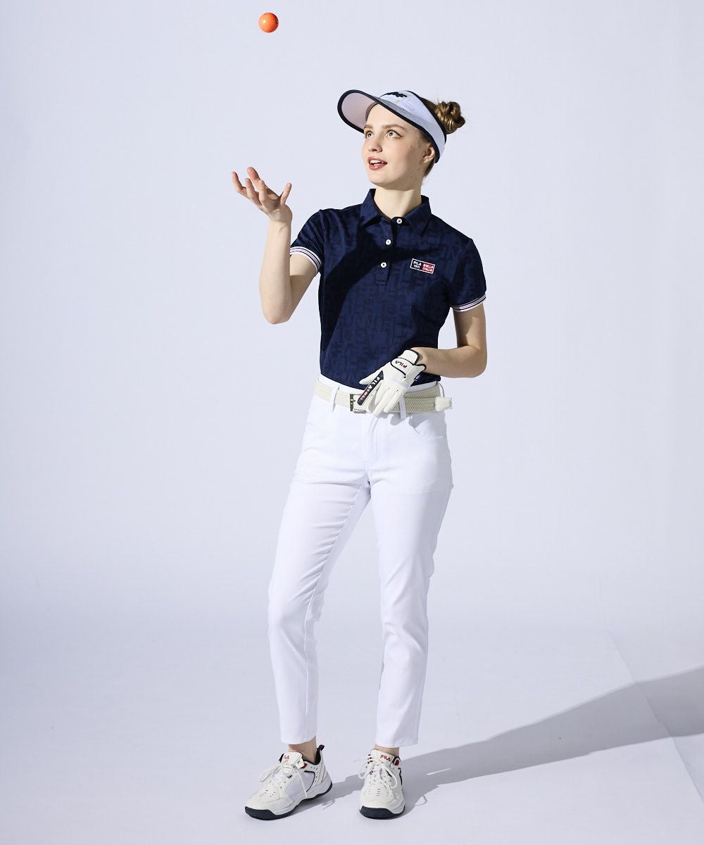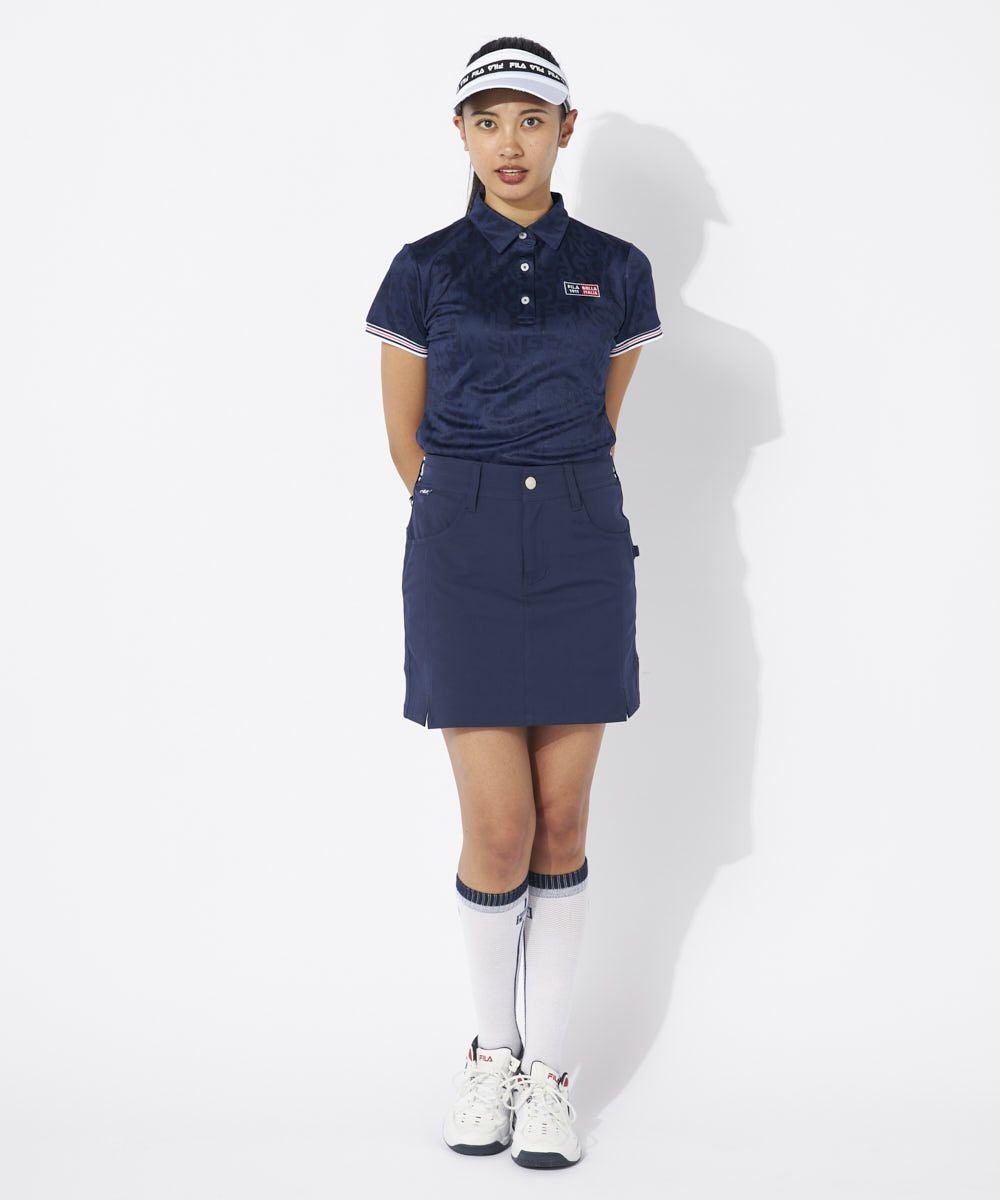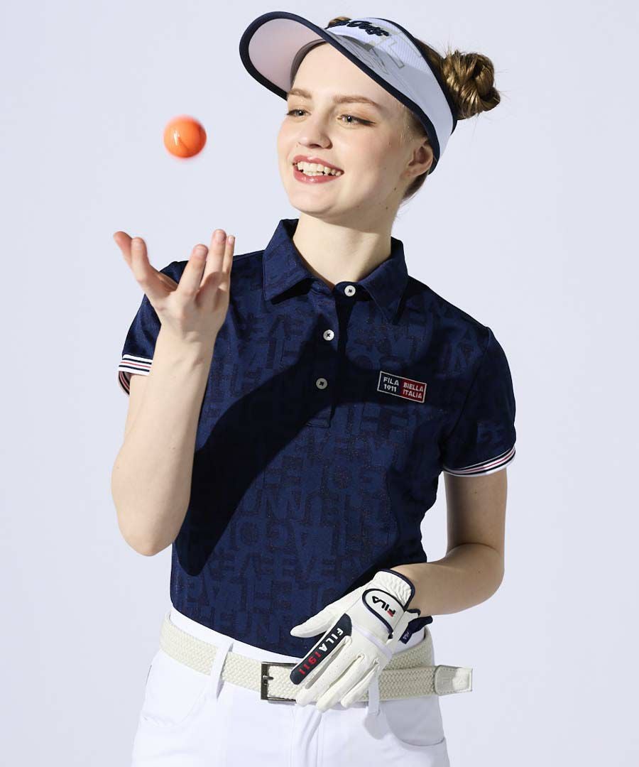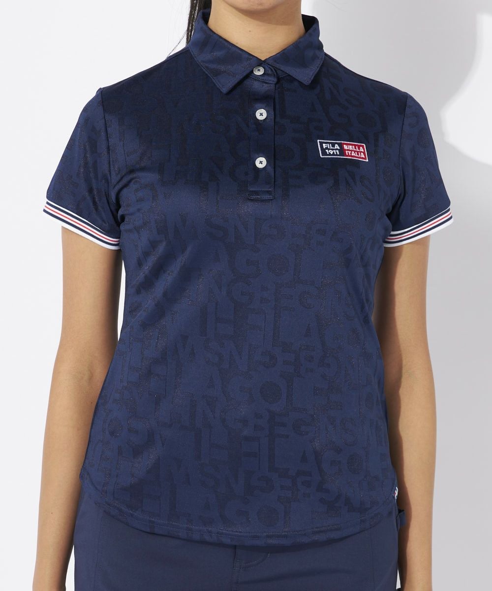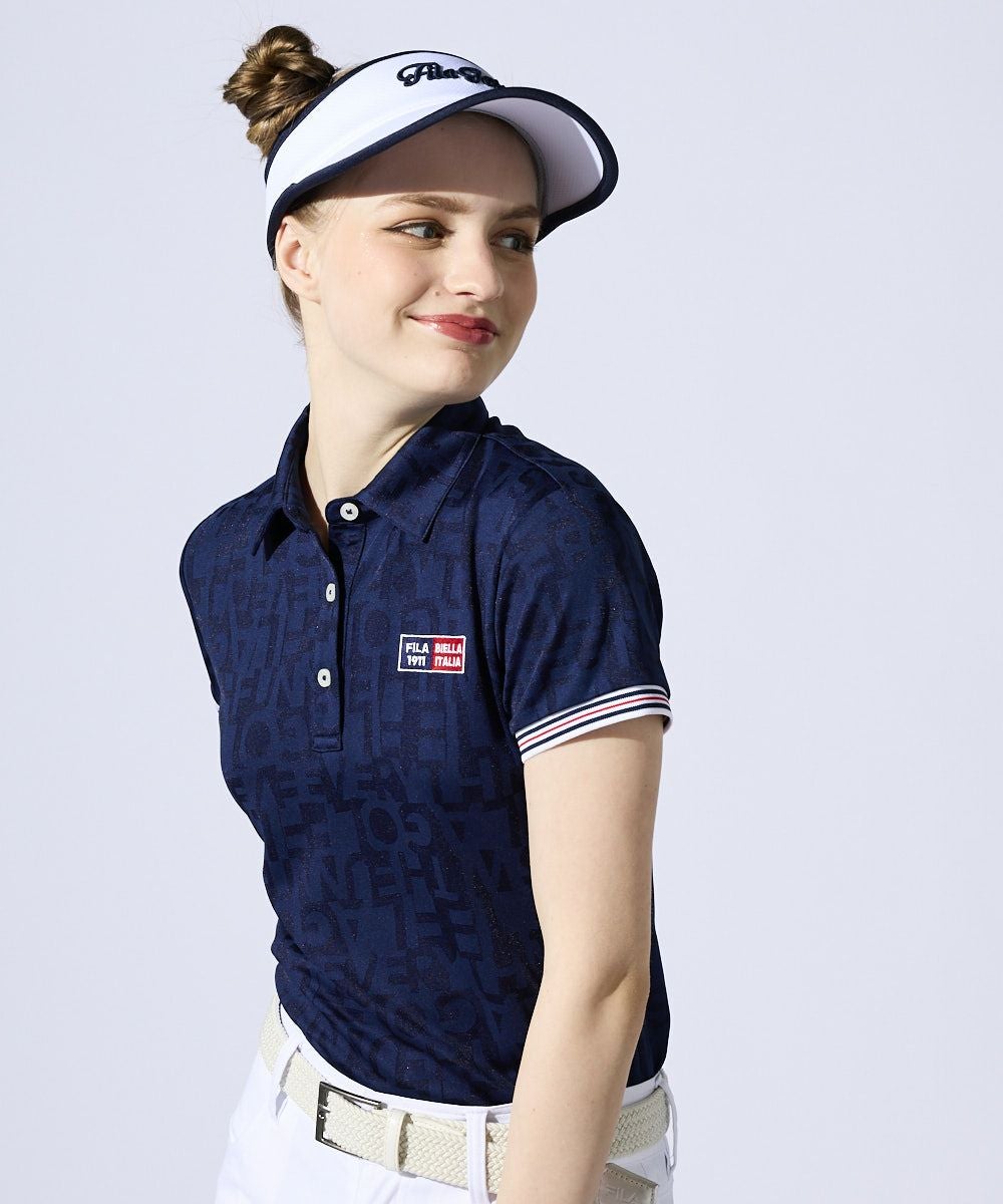 FILA GOLFのロゴをランダムにジャガードで表現したスポーティなシャツ。