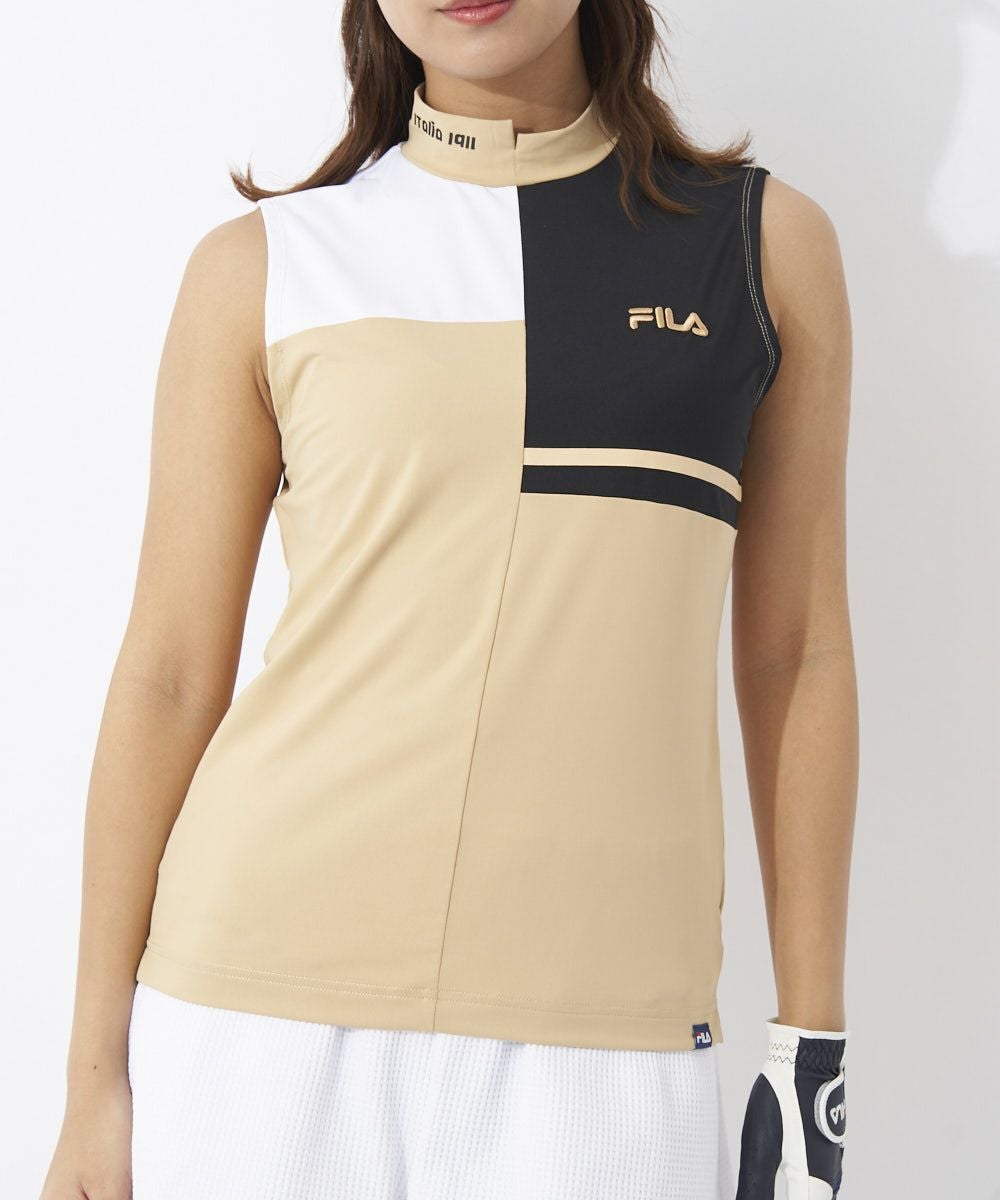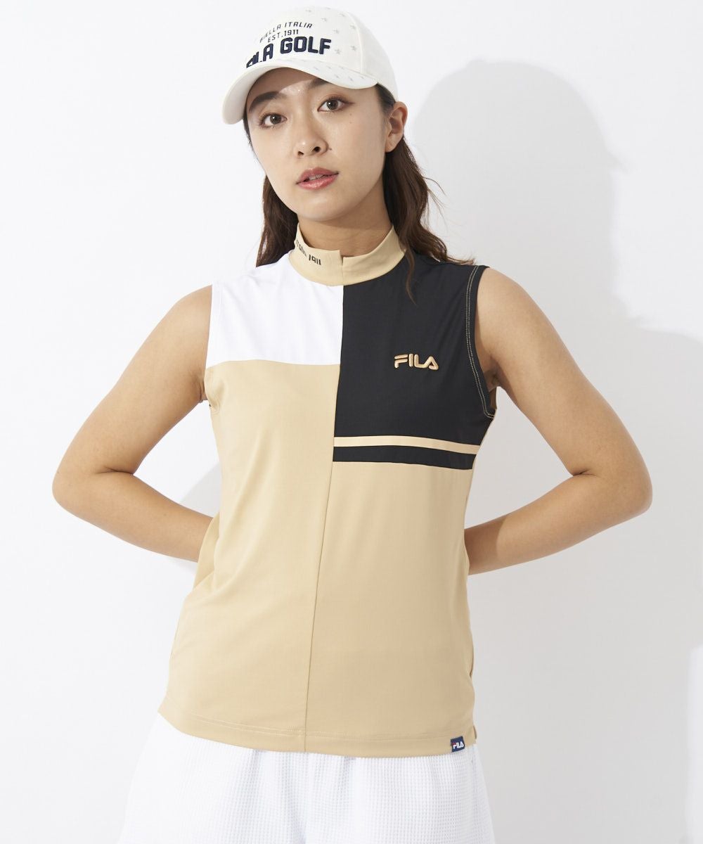 FILAらしいブロック切替を表現したノースリーブモックネックシャツです。