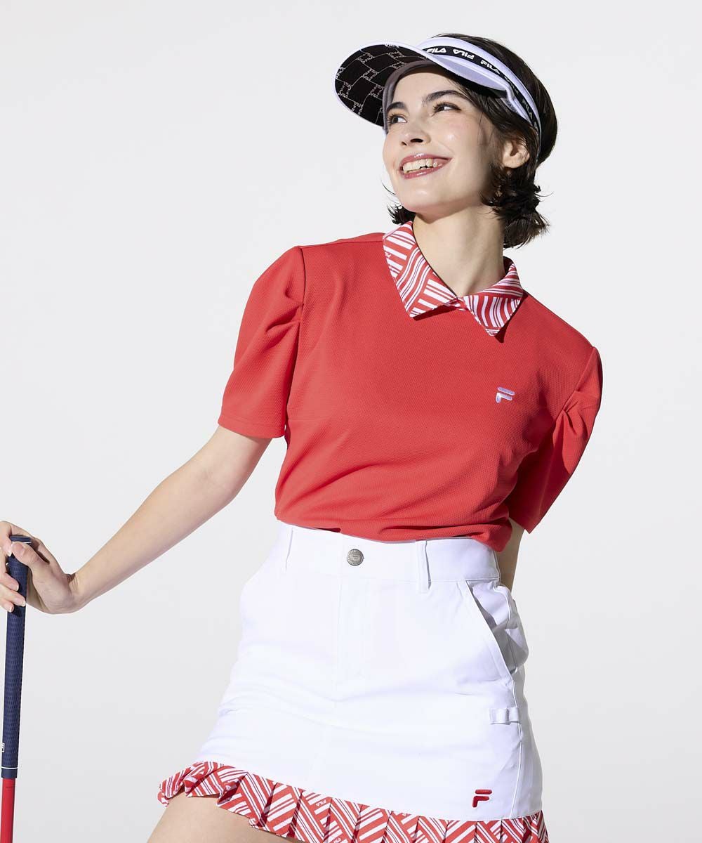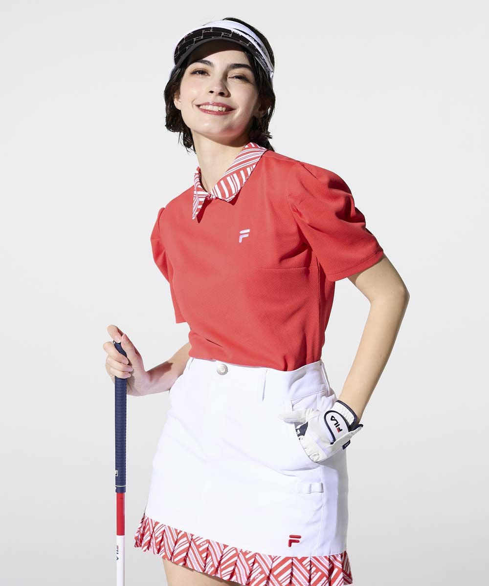 レディース ストライプ衿半袖シャツ【セットアップ可】|遮熱/接触冷感/吸汗速乾