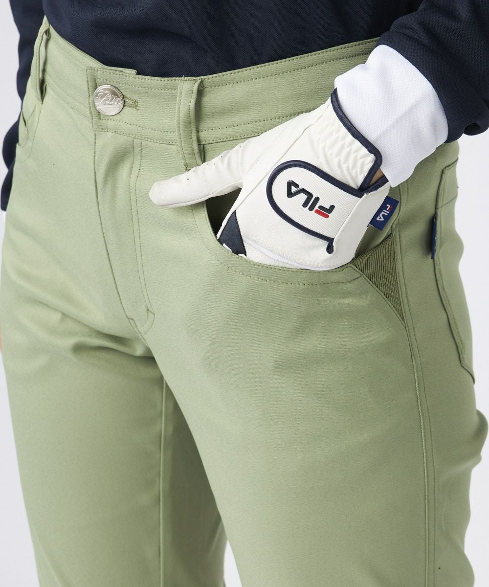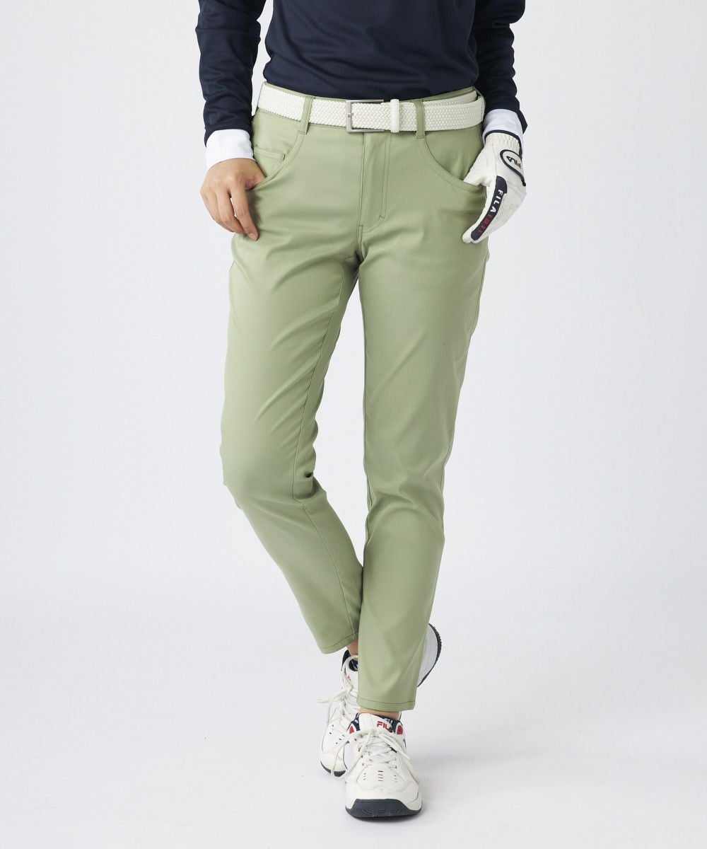 ストレッチ性に富んだ吸水撥水素材を使用。9分丈で裾上げいらず。裾口から風がとおり、涼しく着用できます。