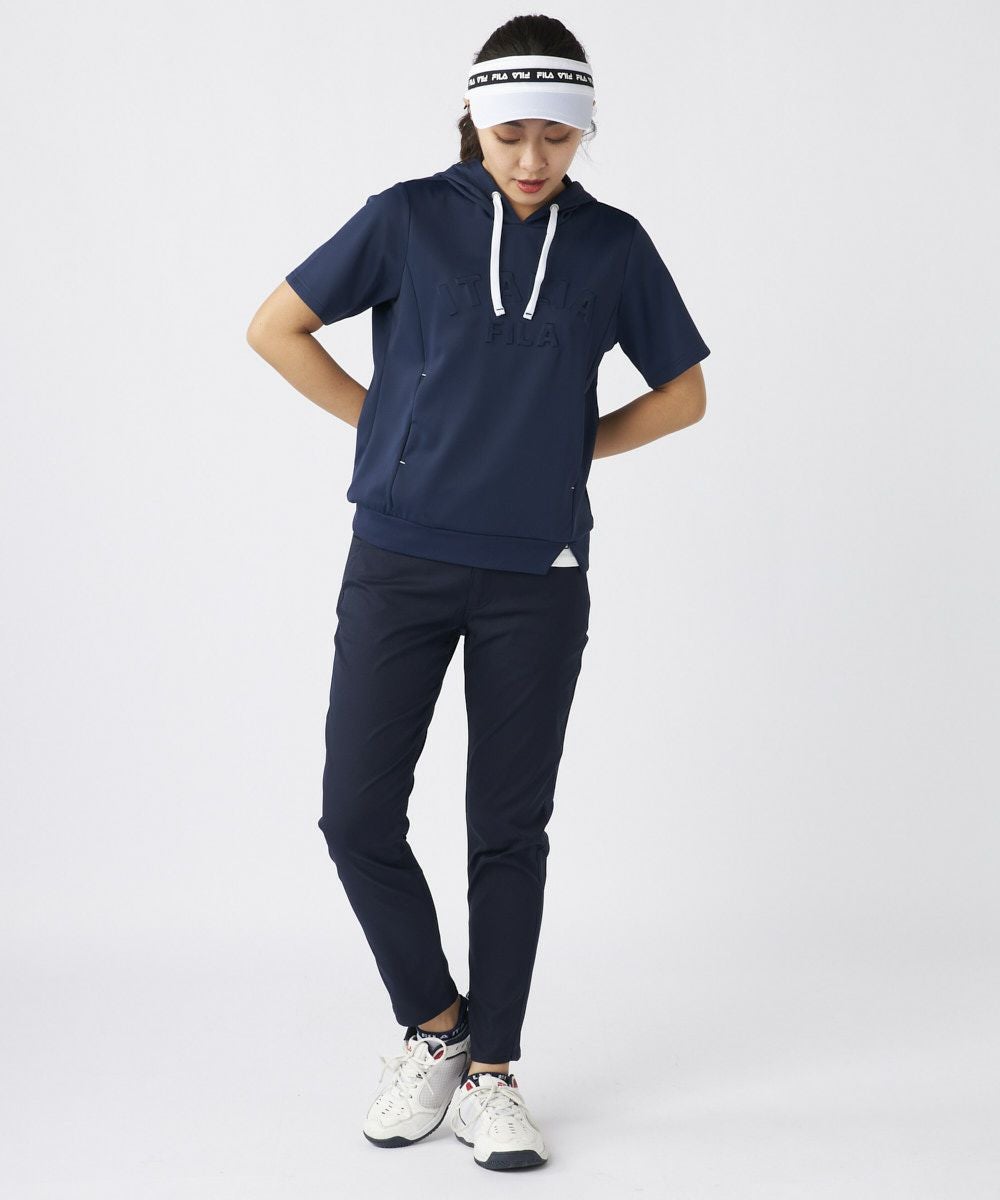 ストレッチ性に富んだ吸水撥水素材を使用。9分丈で裾上げいらず。裾口から風がとおり、涼しく着用できます。
