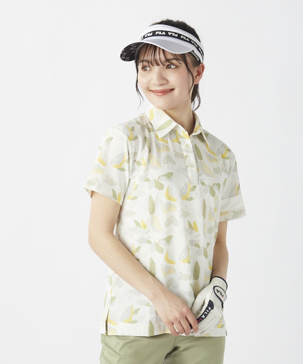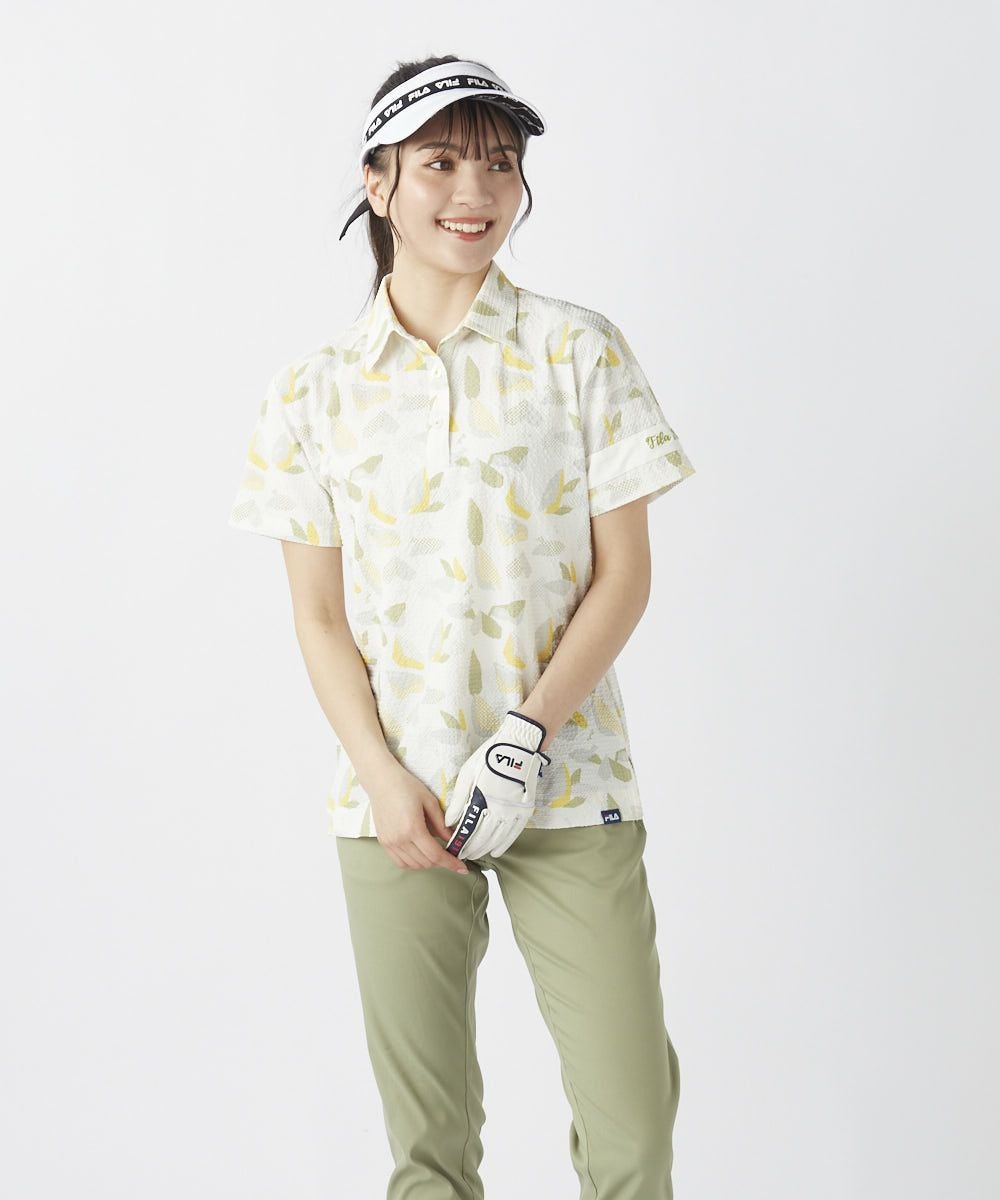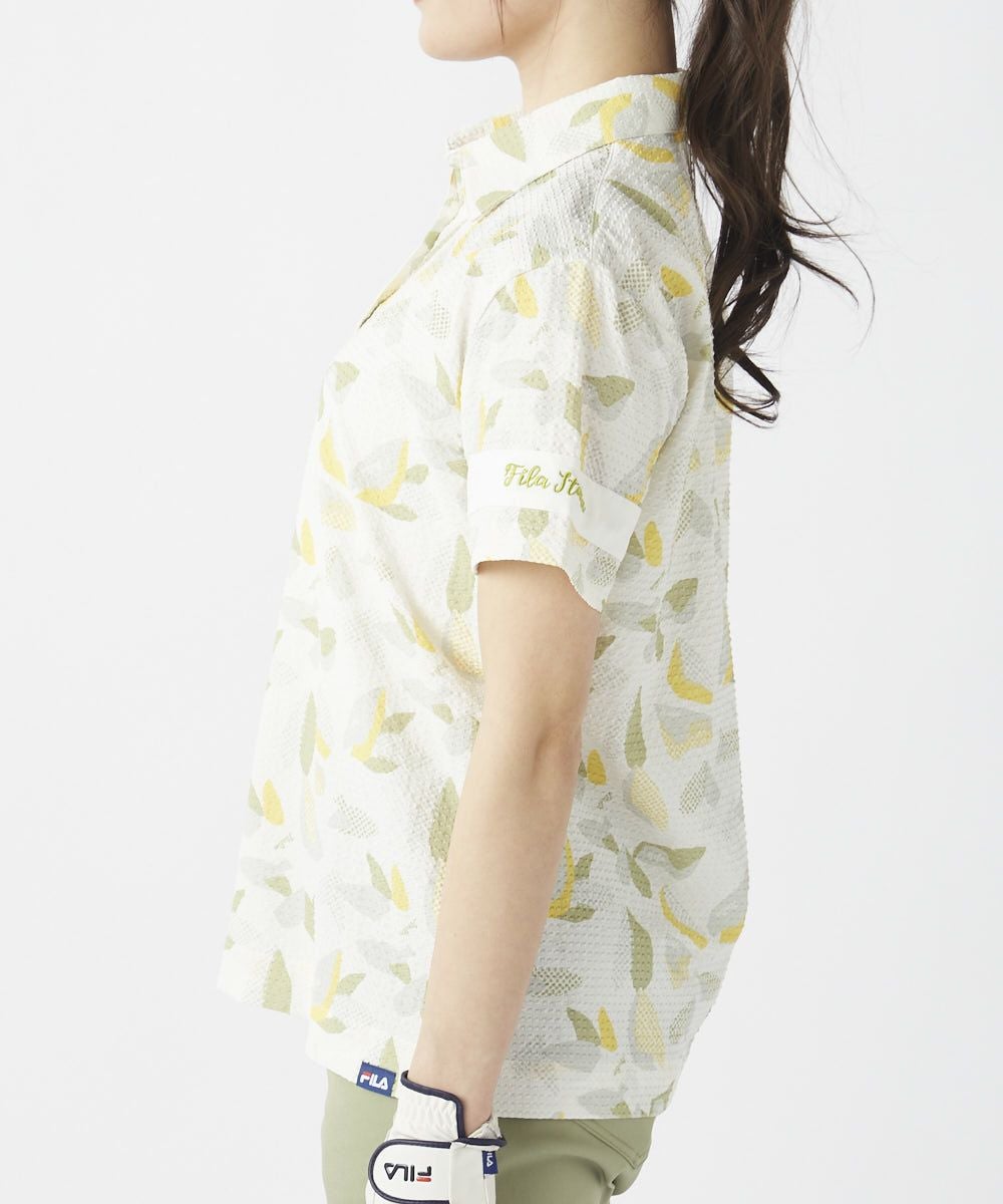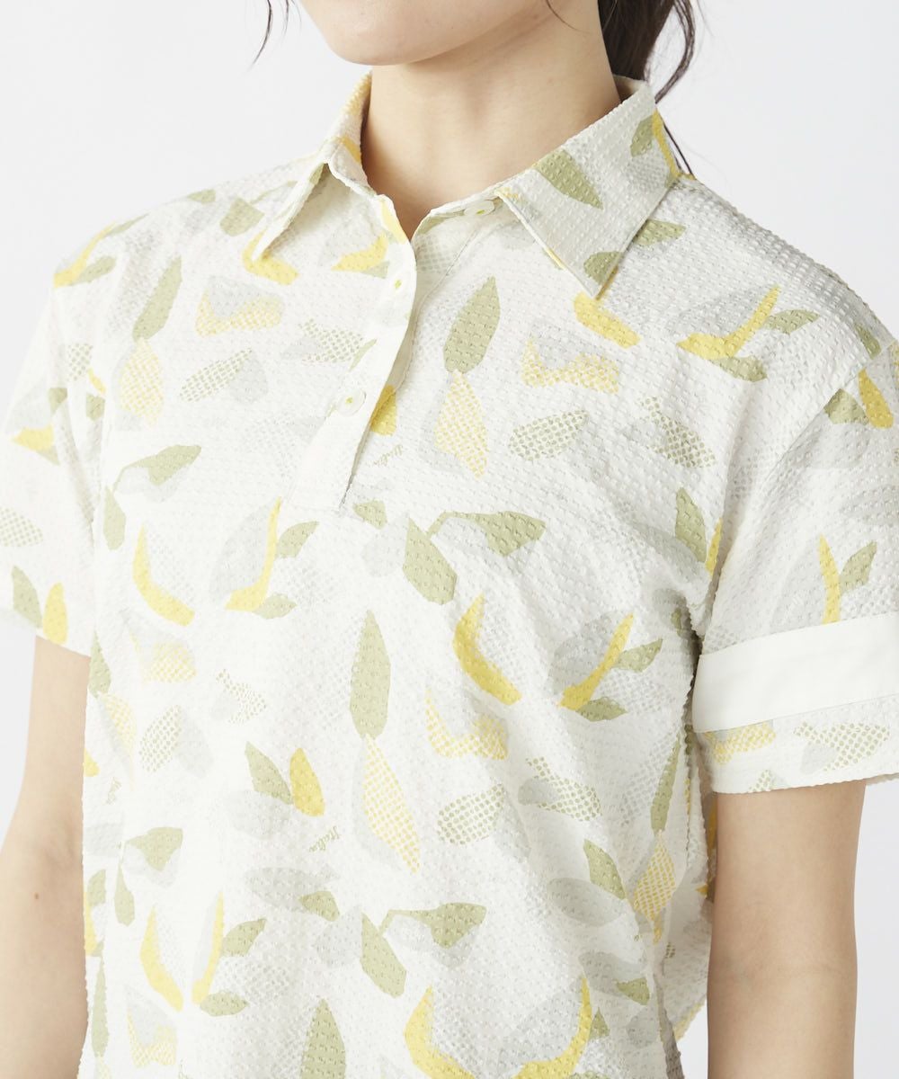 レディース シアサッカー素材 リゾート柄半袖シャツ