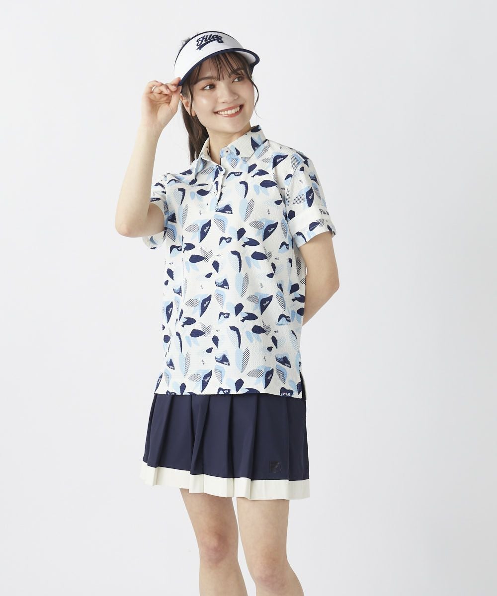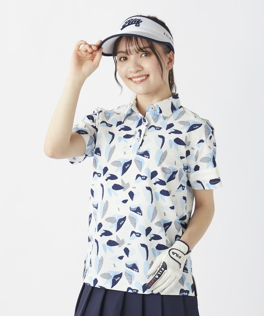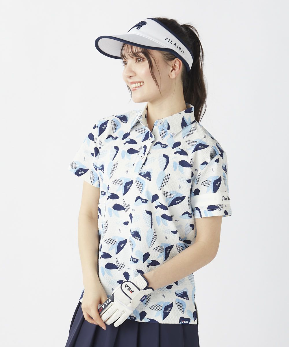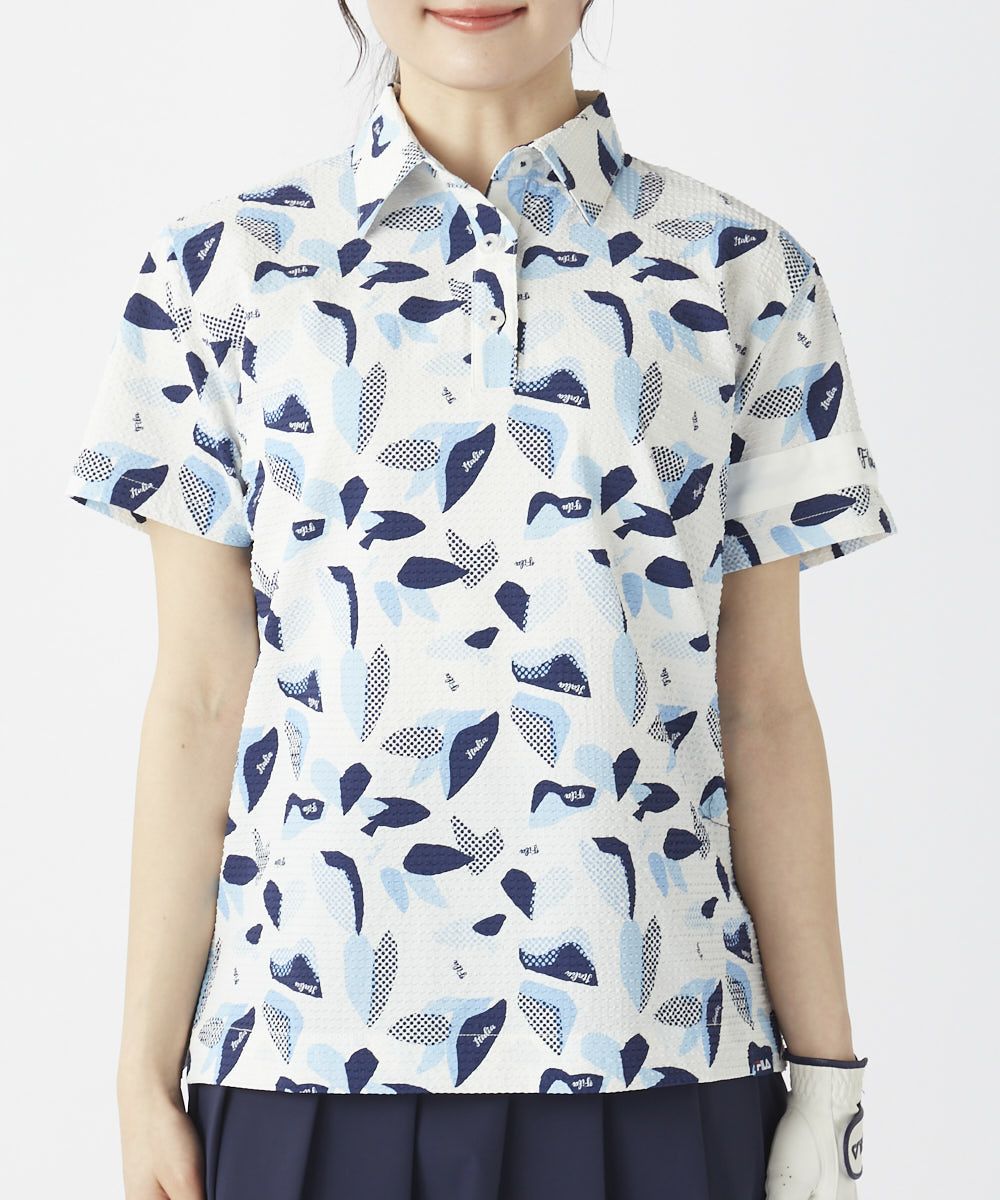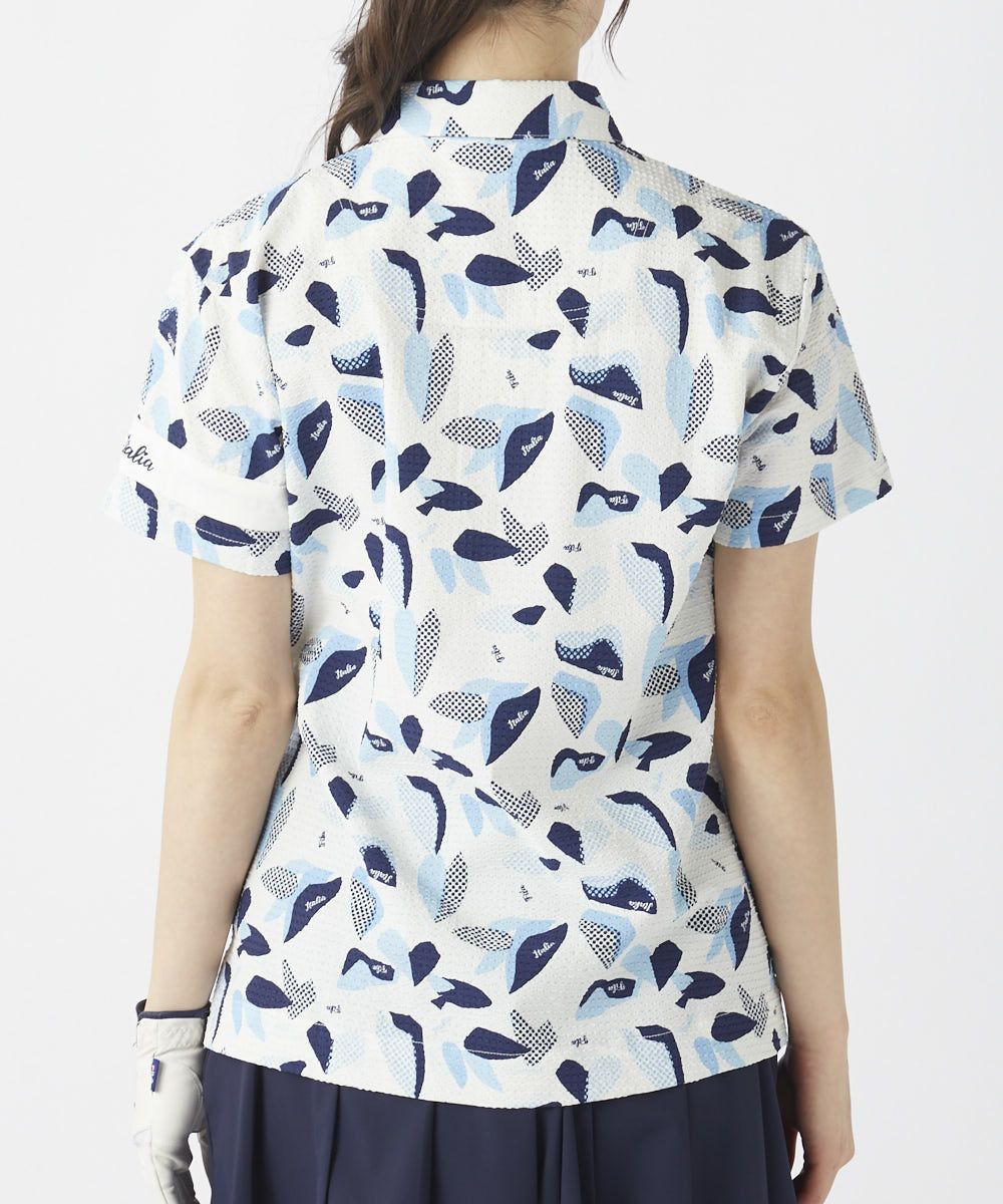 レディース シアサッカー素材 リゾート柄半袖シャツ
