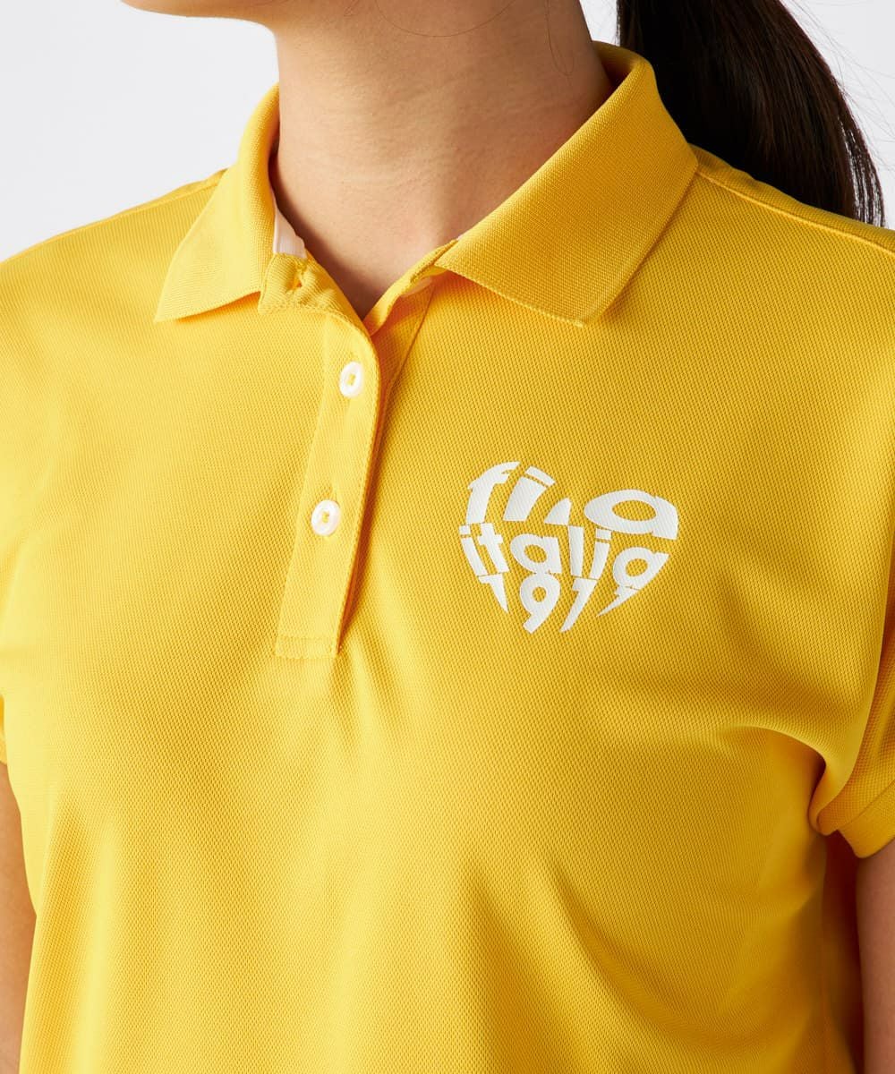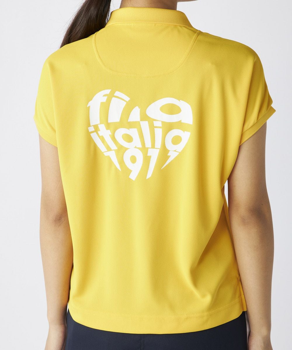 ハート型に切り抜かれたロゴがかわいいポロシャツ。