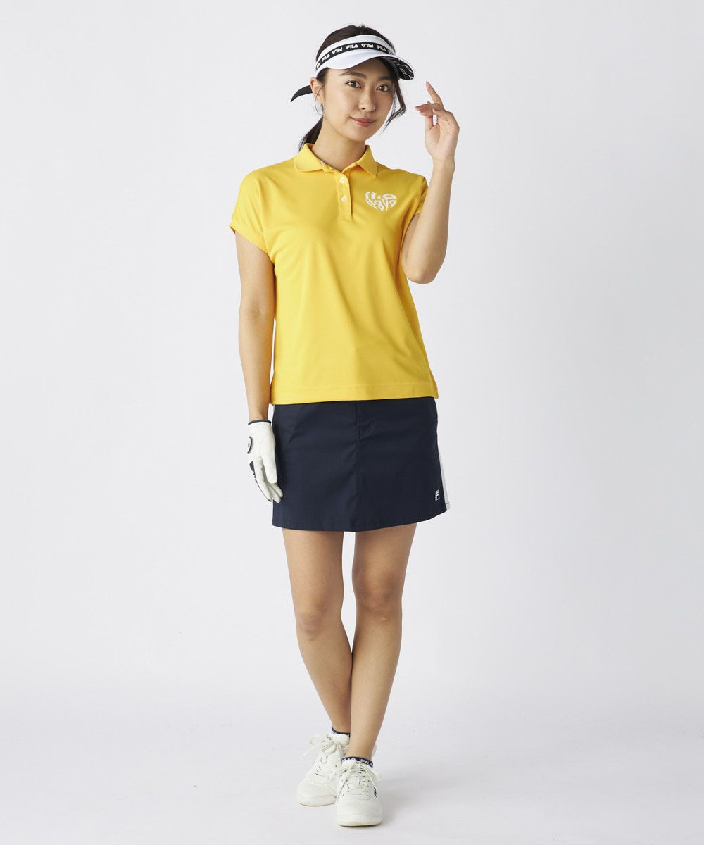 ハート型に切り抜かれたロゴがかわいいポロシャツ。