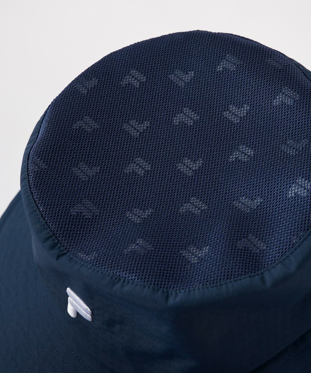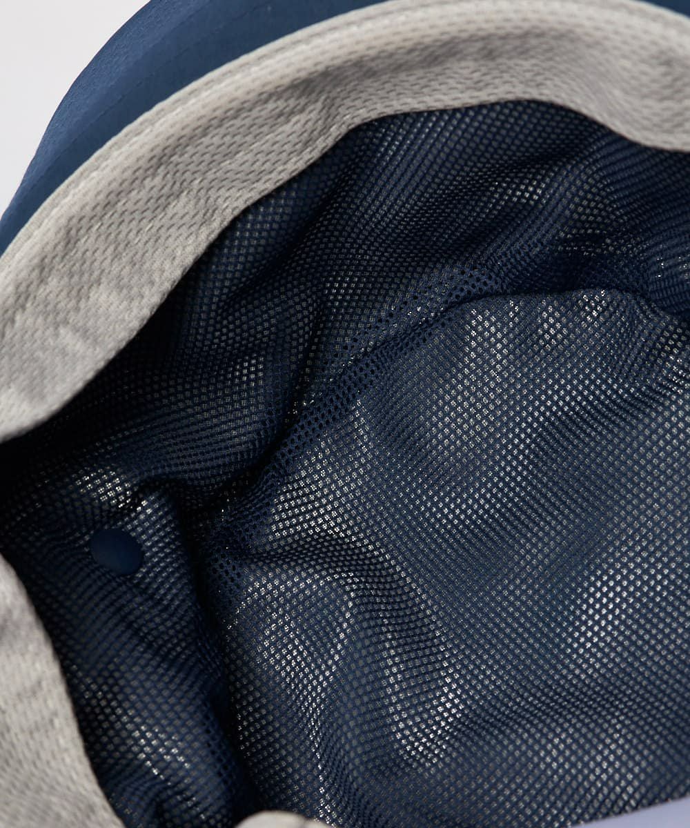 体感-15℃の遮熱性に優れたアルミ蒸着生地を裏地に使用した、熱中症対策のハット。暴対部分には通気性をもたらすメッシュパネルを配備。