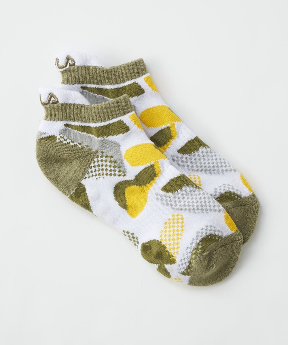 ウェアと連動した、夏らしいリゾート柄を取り入れたスニーカーソックス。