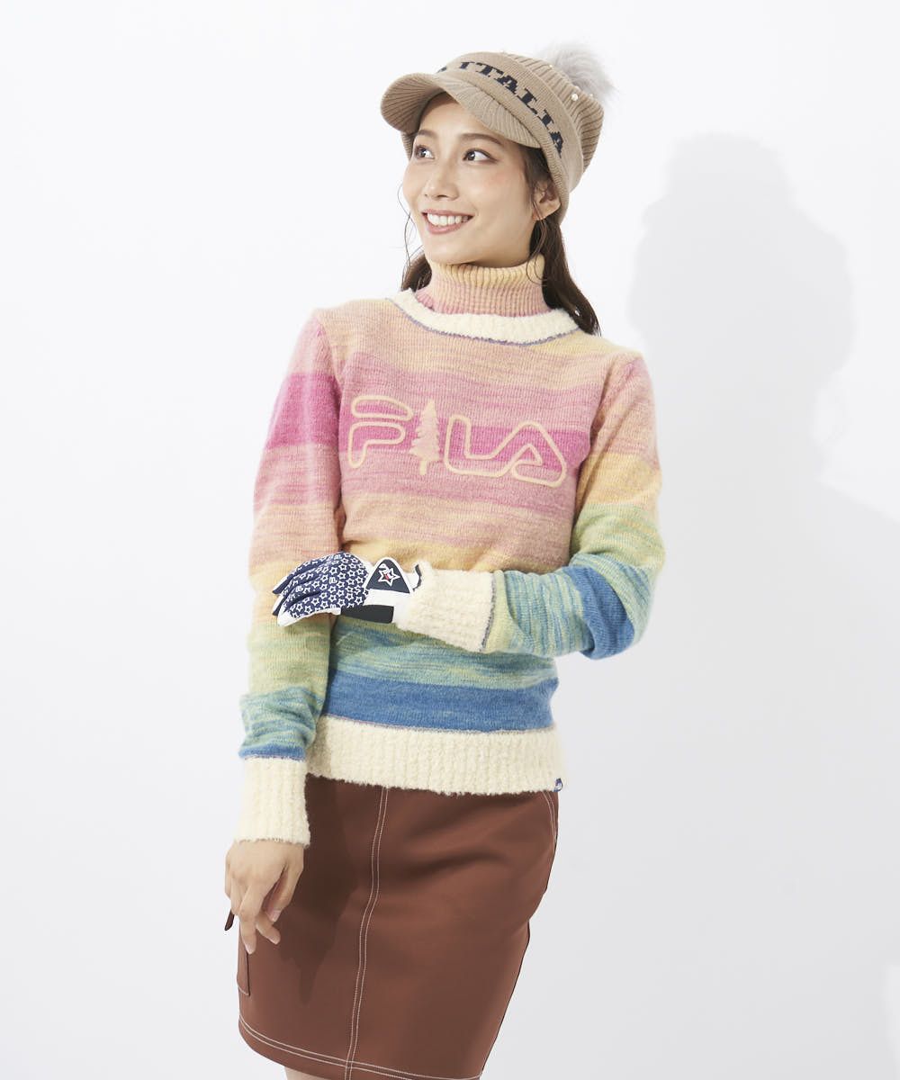 それぞれ単品使いが出来るので、シーンやコーディネートに合わせて、使い分けが出来ます。グラデーションカラーになった段染め糸を使用し、柔らかな印象のセーターに仕上げました。