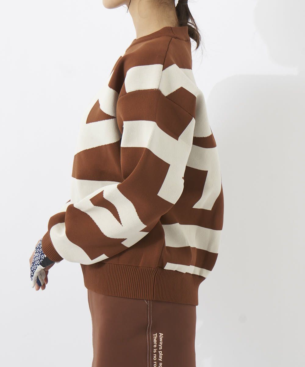軽くて着心地の良い軽量ニットセーター。大胆なロゴグラフィックがコーディネートのアクセントになります。少し大きめのシルエットになっていてカジュアルライクに着こなせます♪