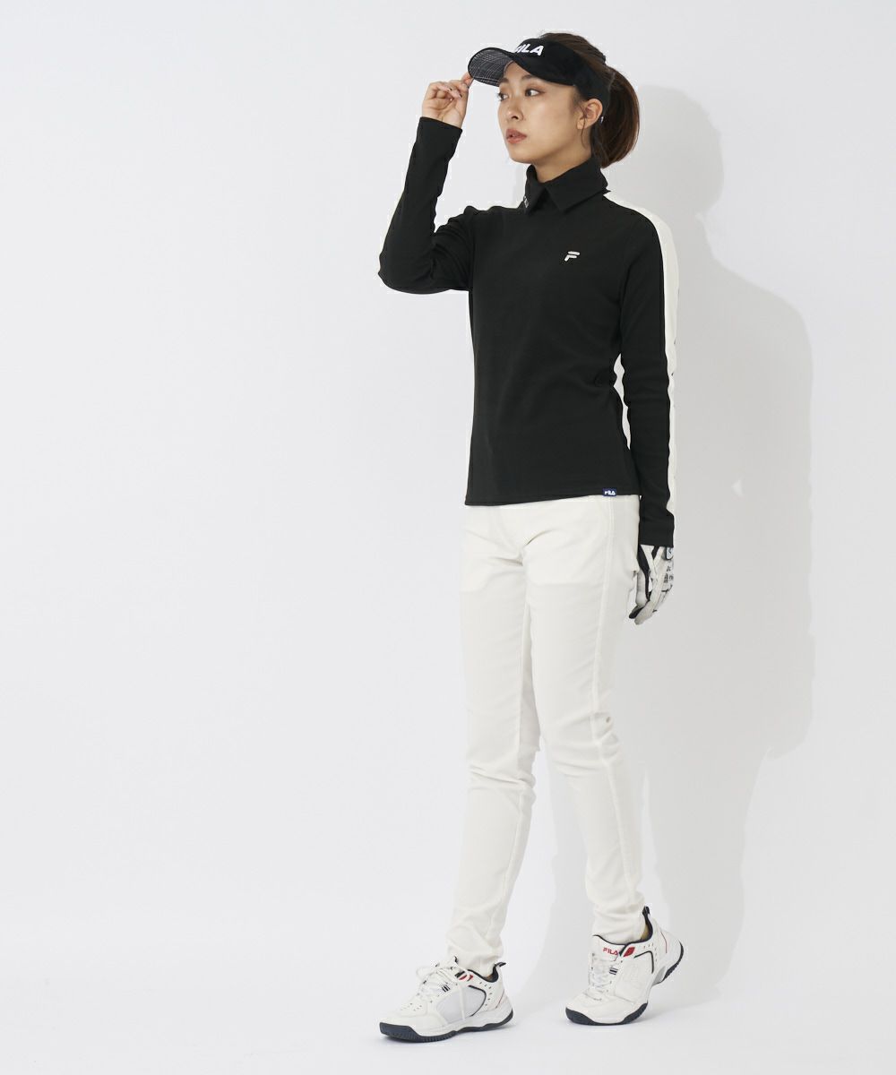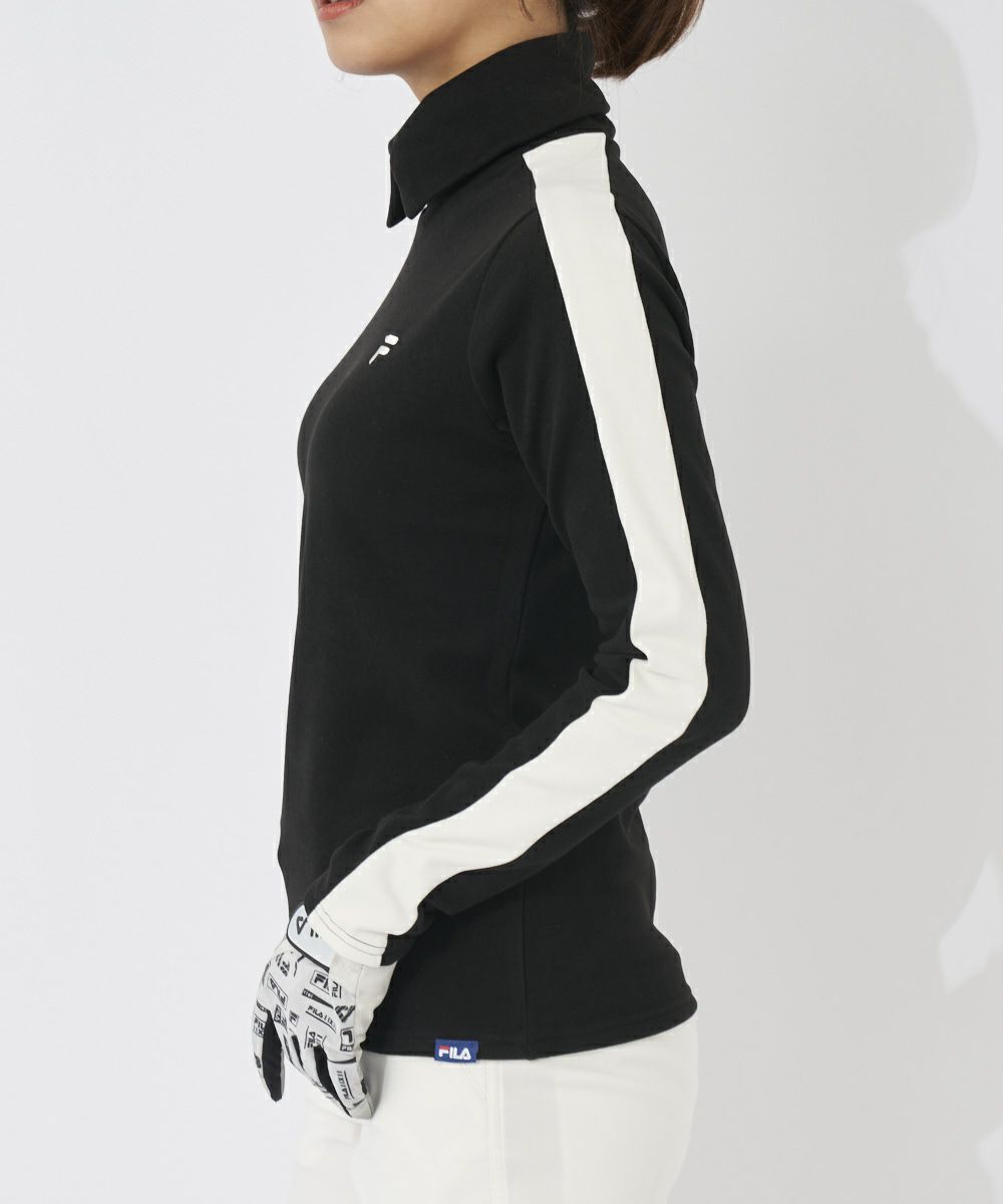 袖のライン切替がアクセントになっており、スポーティーなイメージを取り入れた暖かタートルネック。