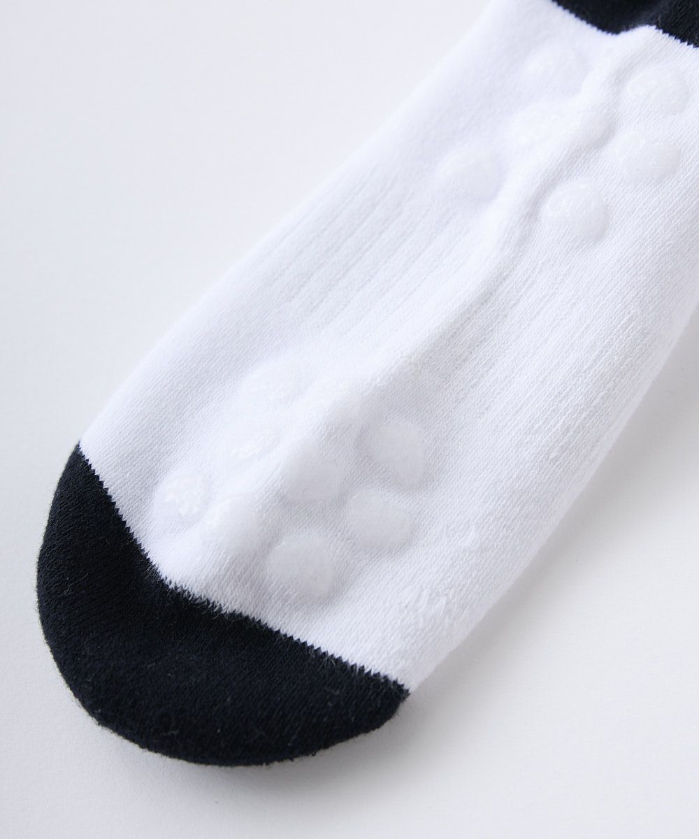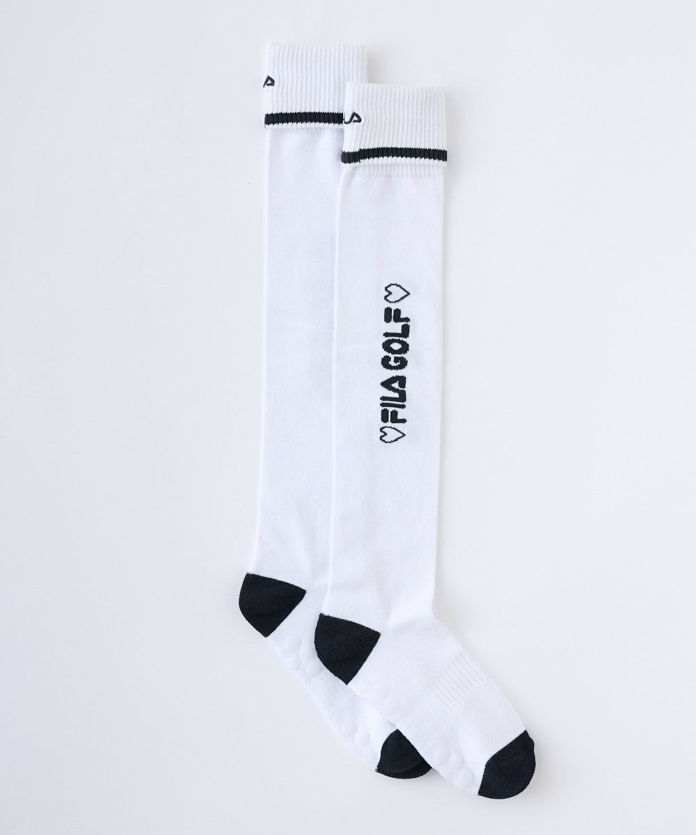 ウェアとマッチしたモチーフ使いのハイソックス。履き口リブは伸ばして履くこともできます。グラフィックを縦にいれることで細見え効果を持たせました。