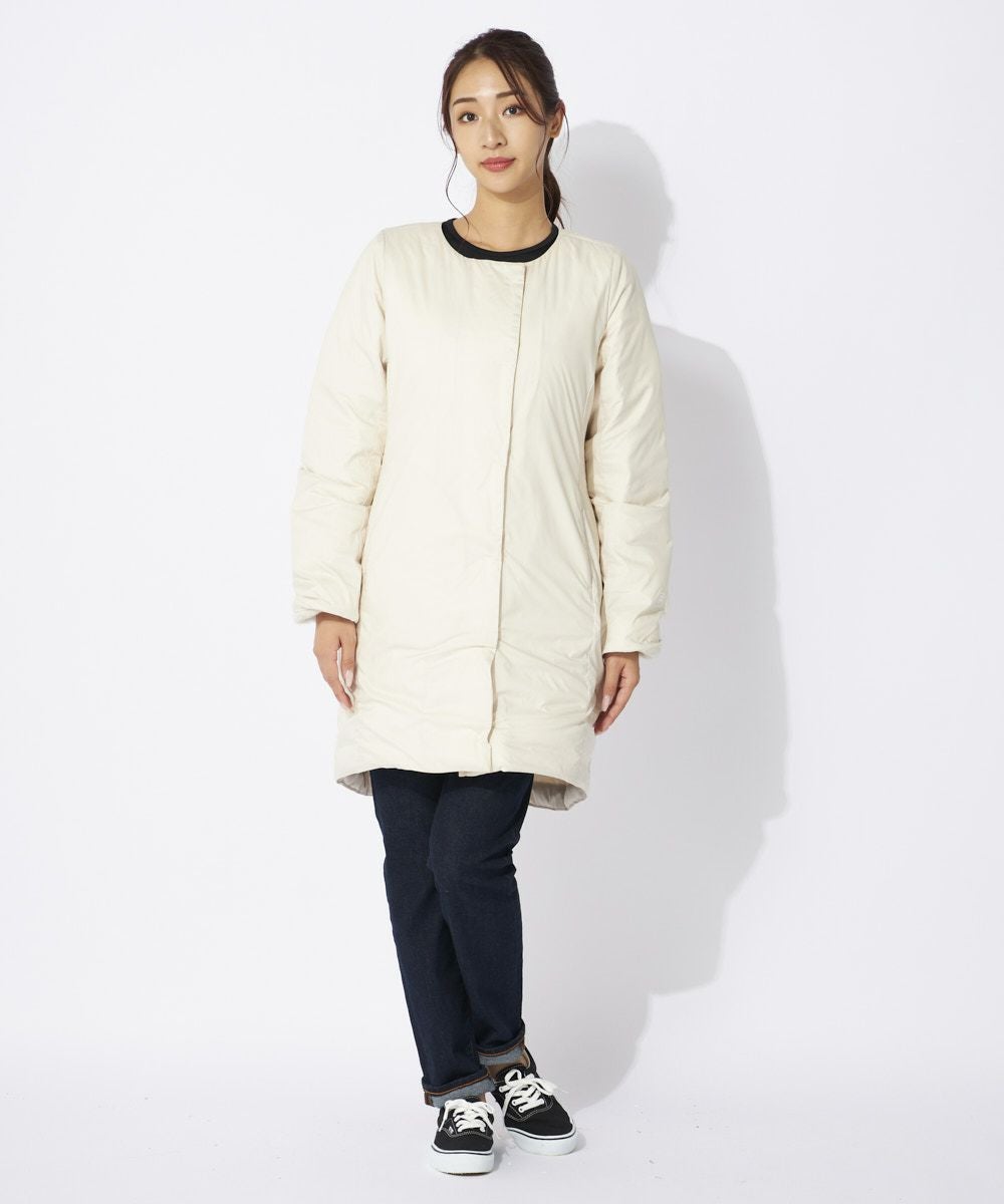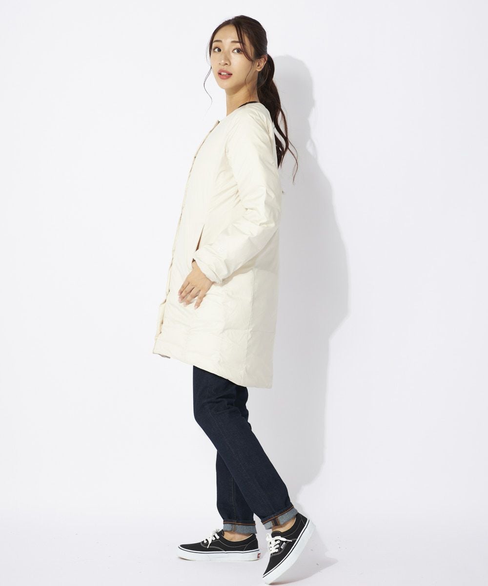 フードをつけるとカジュアルに、ノーカラーにするとややキレイ目にもコーディネートを楽しめます。