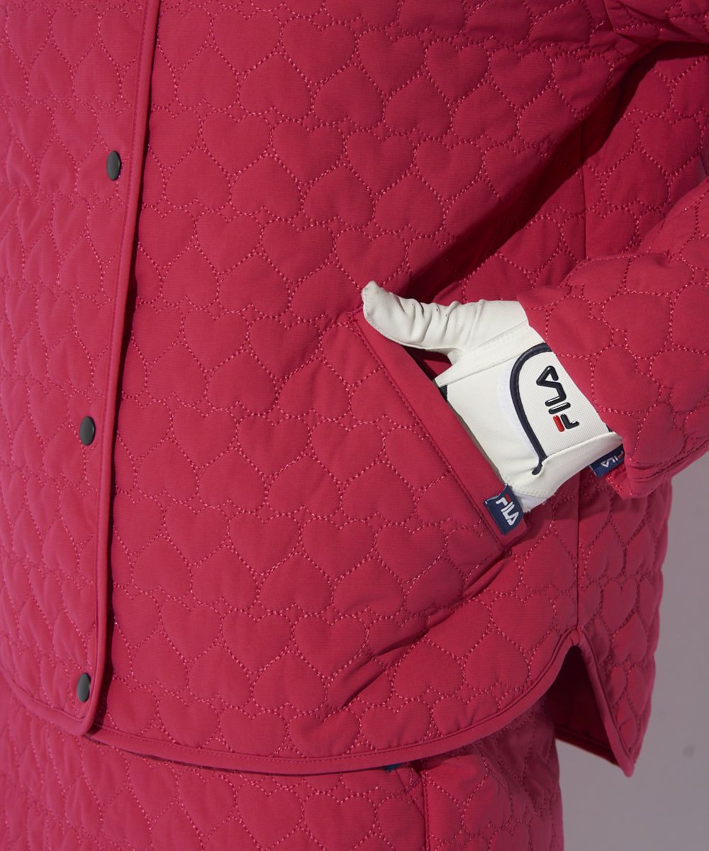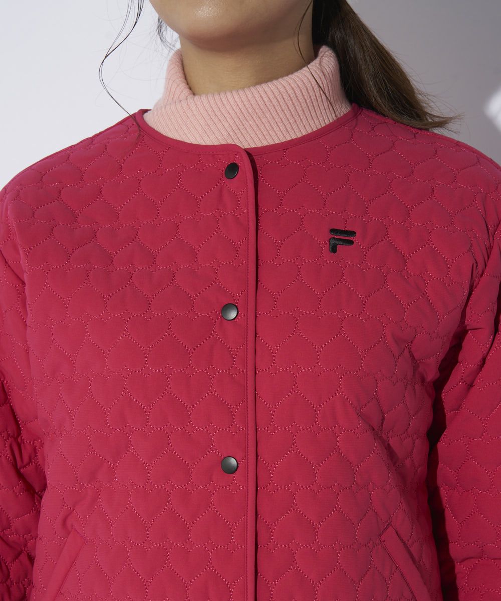 レディース 中綿ノーカラーブルゾン/キルティング/ハート柄|4WAYストレッチ/撥水加工