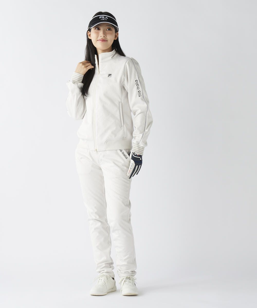高周波キルトによって表現されたタイポロゴ柄が、FILAらしいモダンで洗練された印象を与えます。縦キルトとパターン設計にこだわることで、ボンディング素材ながら着膨れしない、スッキリとした美脚シルエットを実現。機能的でありながらファッション性も妥協しない、大人のためのデザインです。