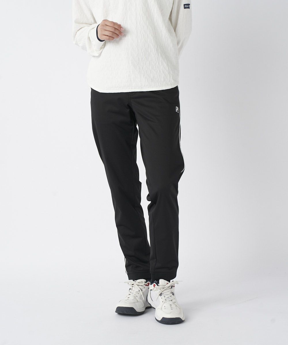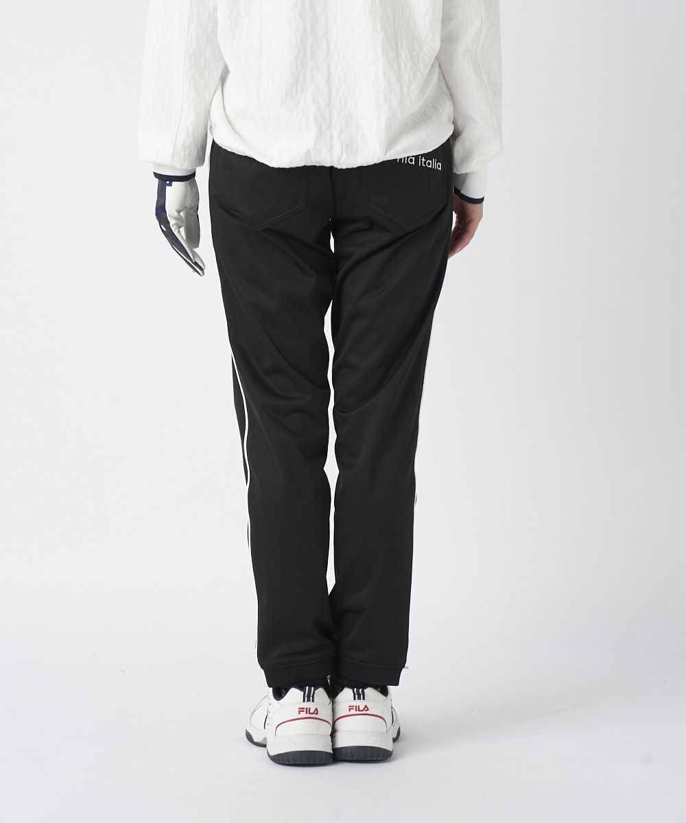 シャープでスッキリとしたテーパードシルエットが、レッグラインを美しく見せます。前振りに配したサイドの配色パイピングがスポーティなアクセントとなり、視覚的なスタイルアップ効果も発揮。ウエスト後ろと裾のリブ仕様でフィット感を高め、アクティブな大人の女性にぴったりの洗練されたデザインです。