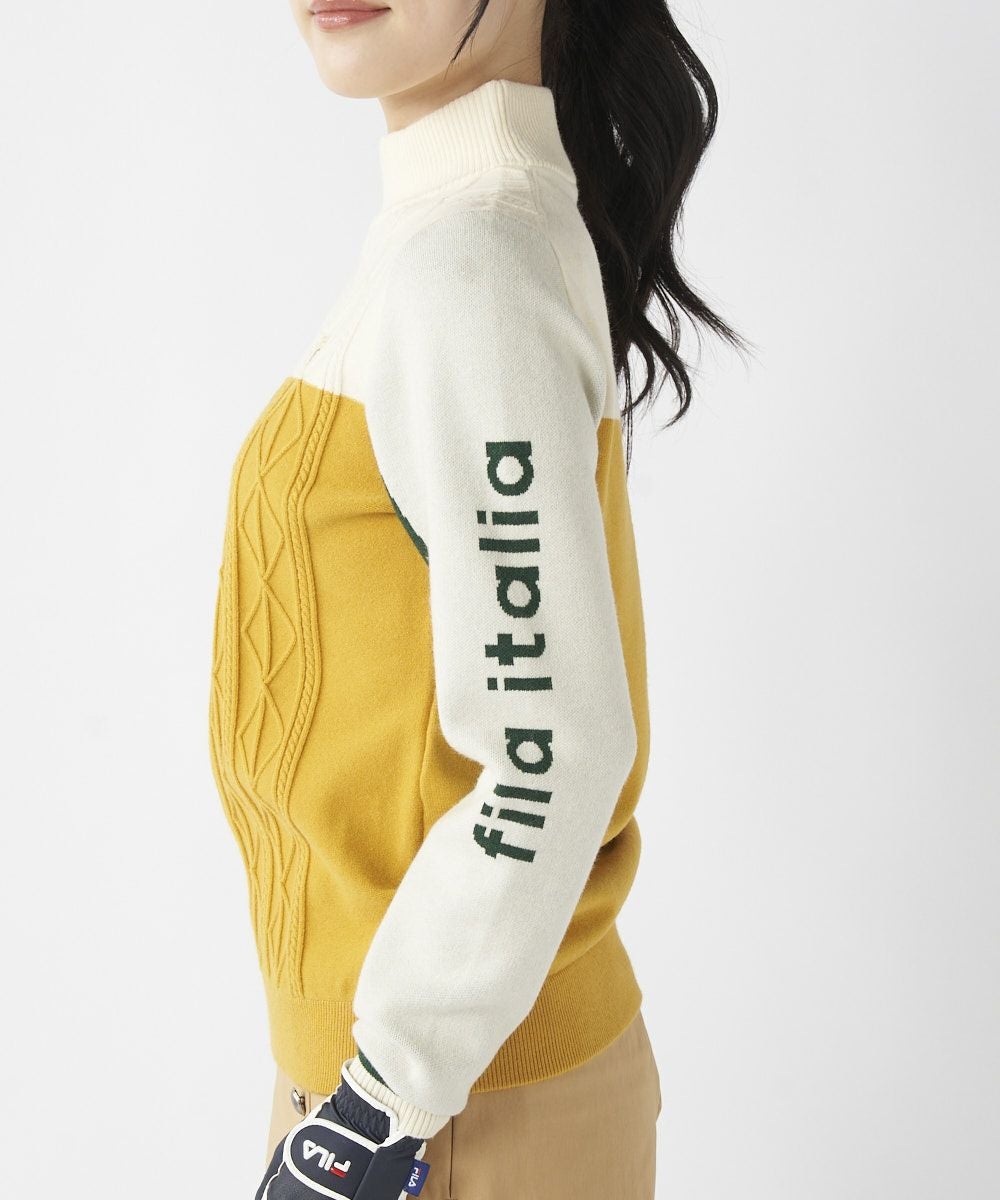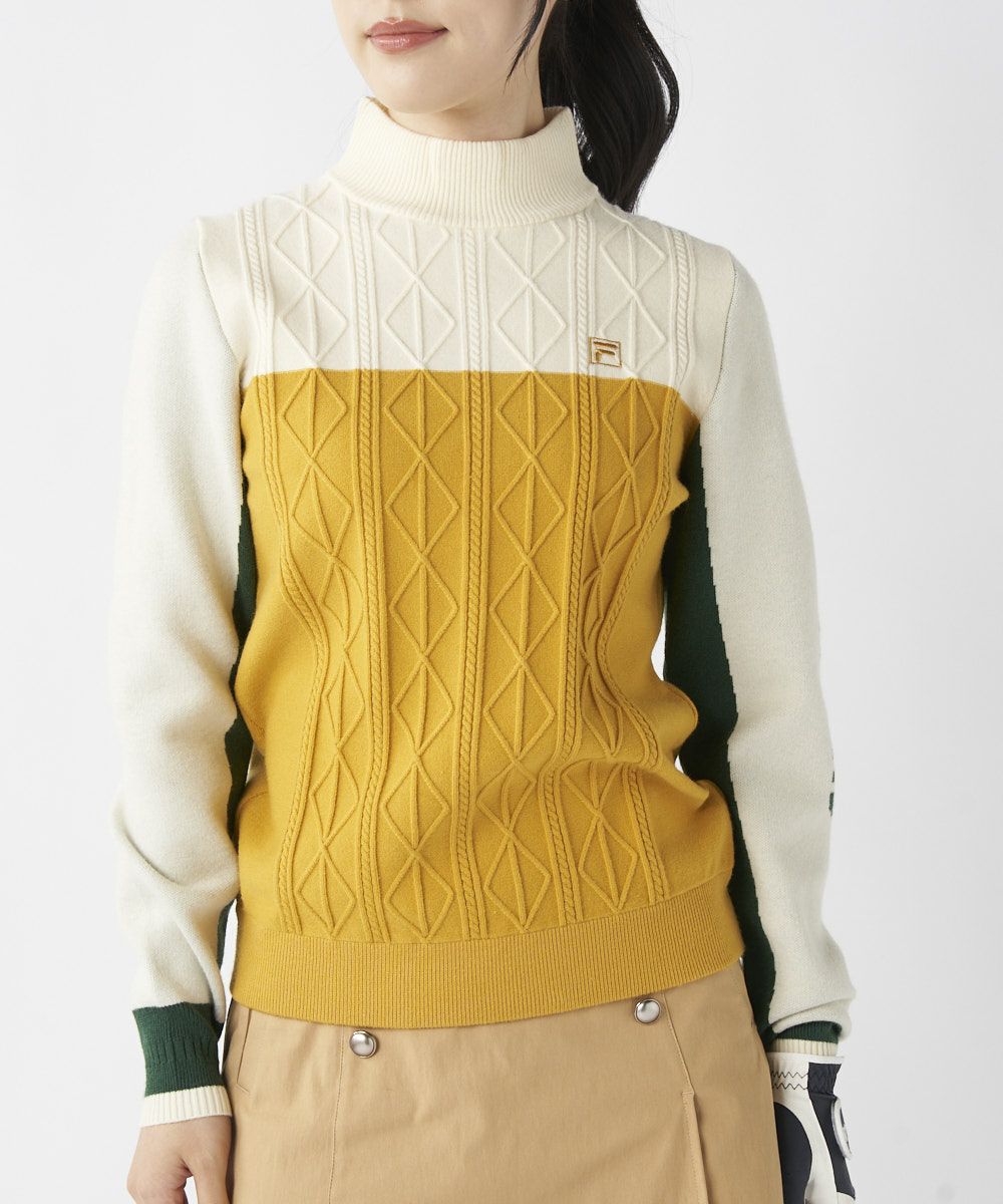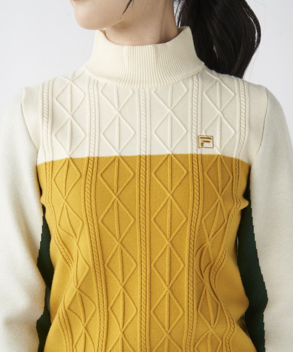 レディース ブロック切り替えモックネックセーター