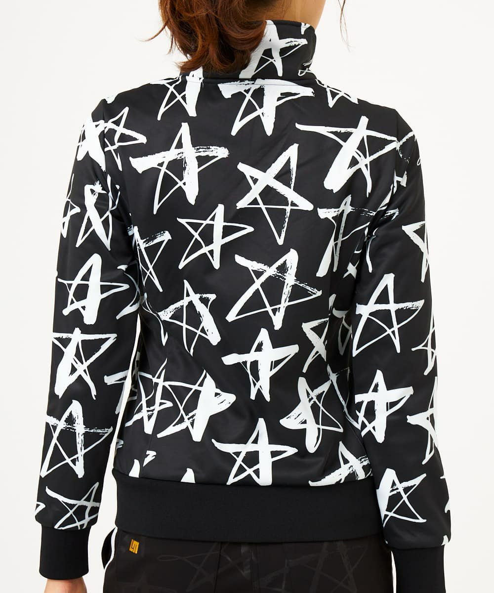 ストレッチ性のあるカットソー素材と裏フリース素材にフィルム加工を施した3層ボンディング素材のブルゾン。袖口と裾は風が入りにくいリブ仕様。モノクロ柄アソート。