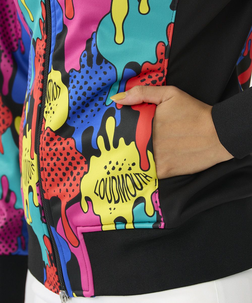 ストレッチ性のあるカットソー素材と裏フリース素材にフィルム加工を施し3層ボンディング素材を使用したブルゾンです。 袖口と裾は風が入りにくいリブ使用で今シーズンインパクトのある柄の3カラー展開