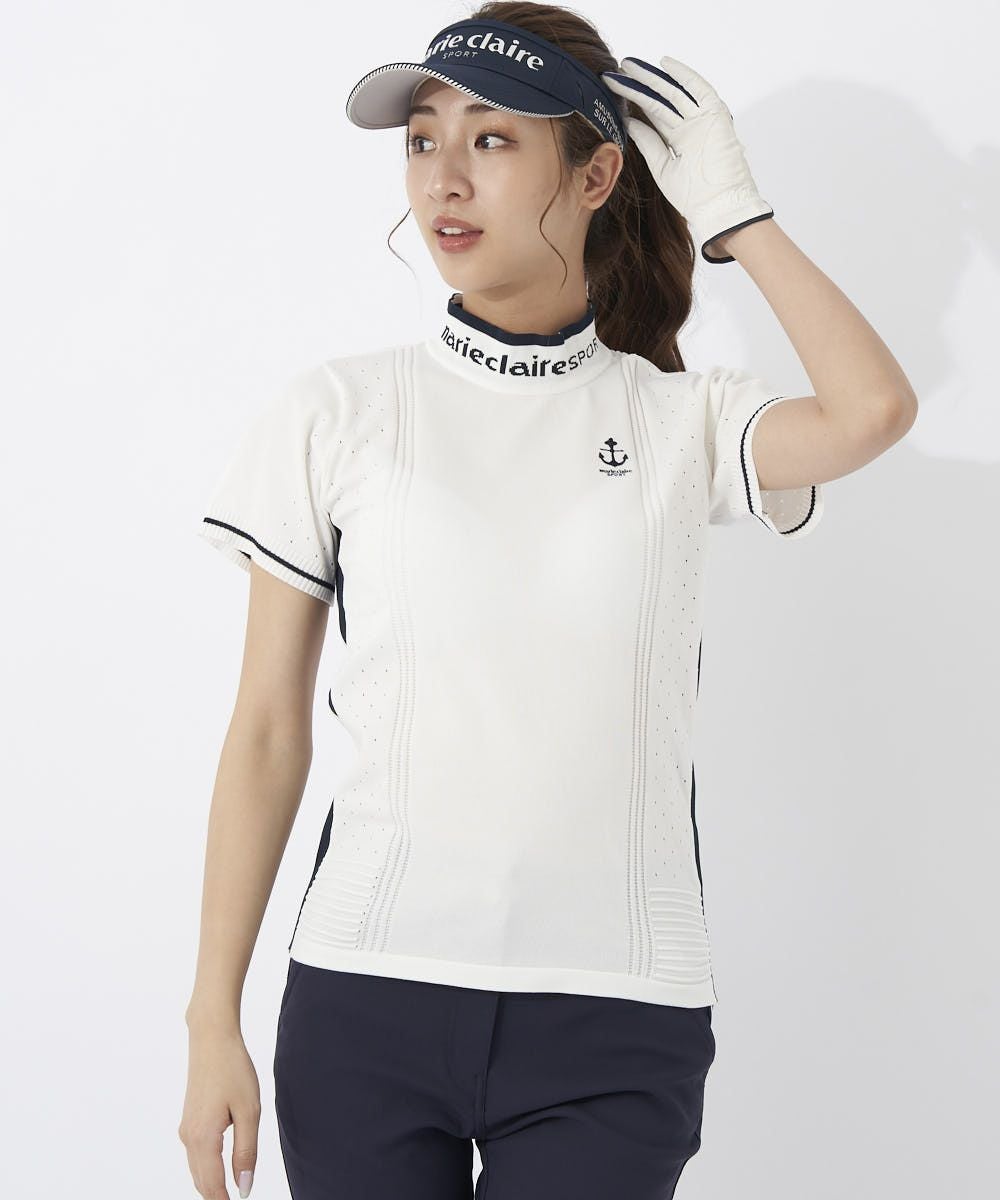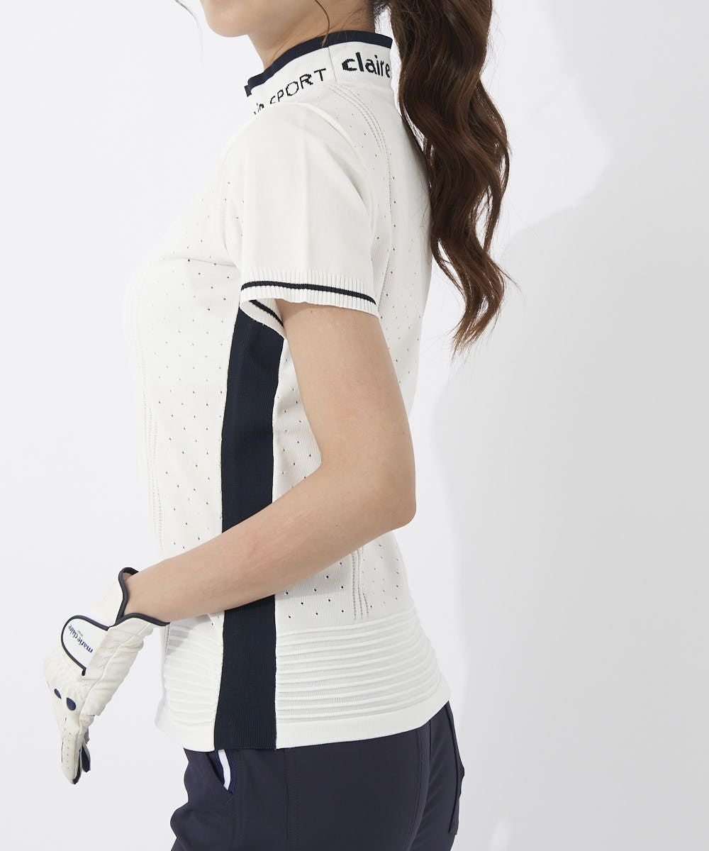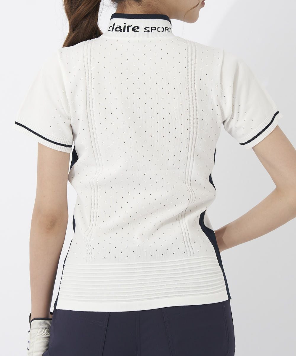 シンプル無地ライクなニットモックシャツはメッシュと立体編み柄でスポーティー♪