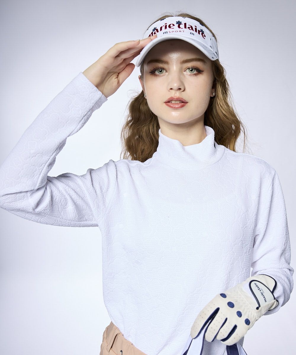 膨れジャガード素材にオリジナルのエンボス加工を施した長袖のモックネック。無地ライクに合わせやすく、主張しすぎない柄表現が高見えに◎軽い肌触りで夏の日除け~秋口までロングシーズン活躍してくれます。