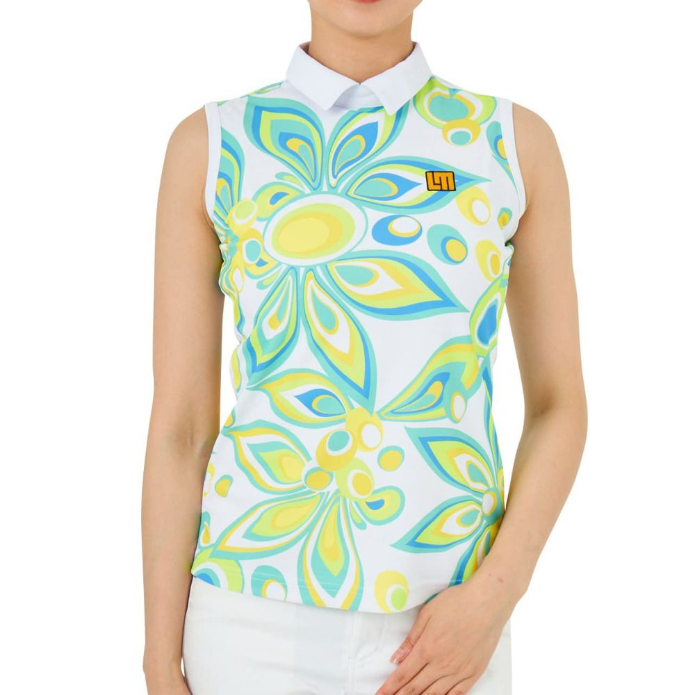 サラッとした肌触りのポリエステル素材を使用した 柄ノースリーブシャツ。ネオンカラーを打ち出しに今シーズンのインパクトのある柄を展開。