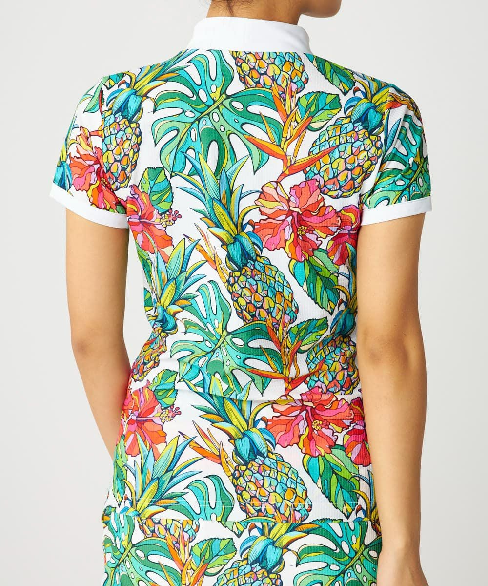 レディース ECO防透スムース 柄モックネックシャツ Tropical Pine/トロピカルパイン