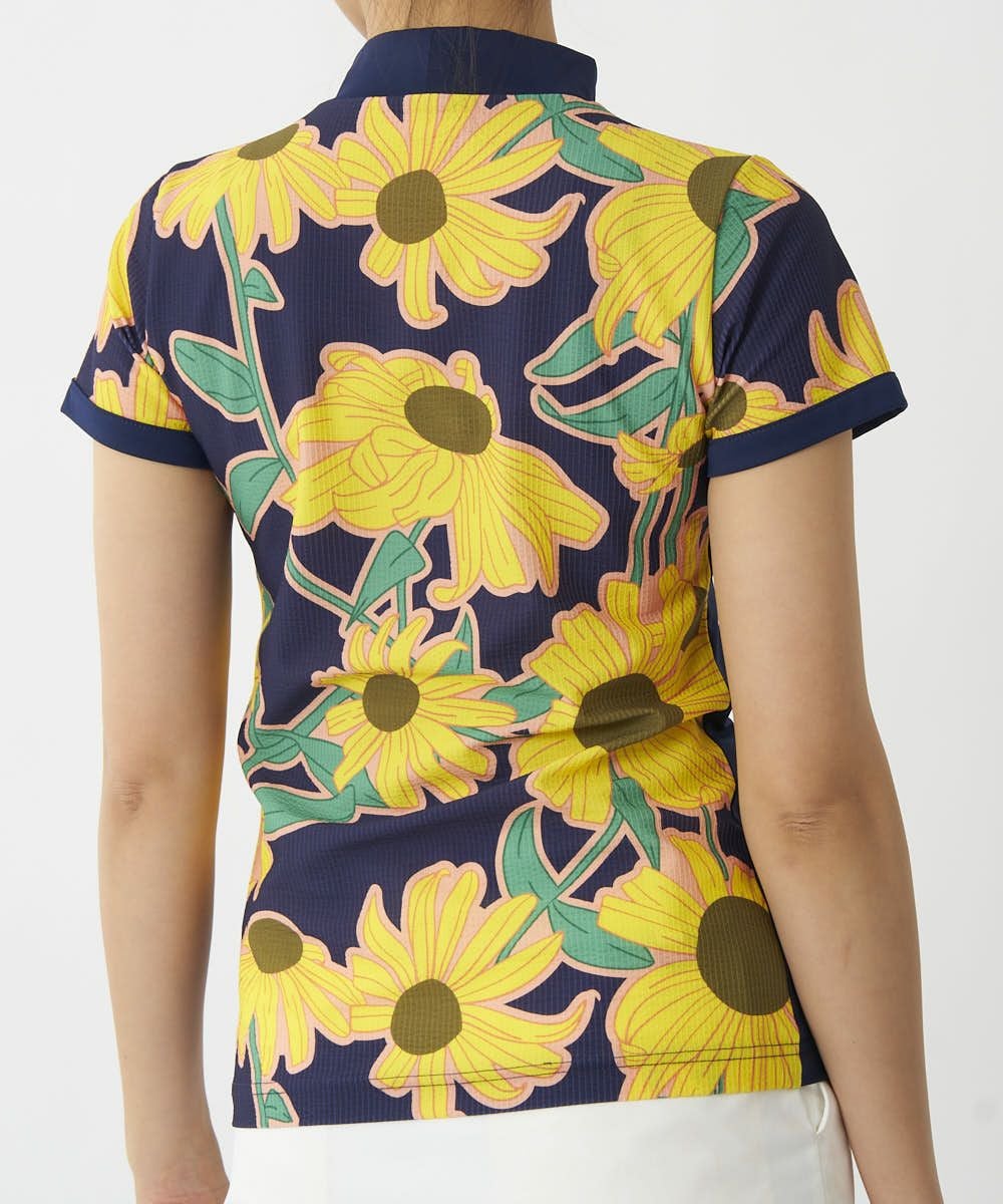 レディース ECO防透スムース 柄モックネックシャツ Retro Helianthus/レトロヘリアンサス
