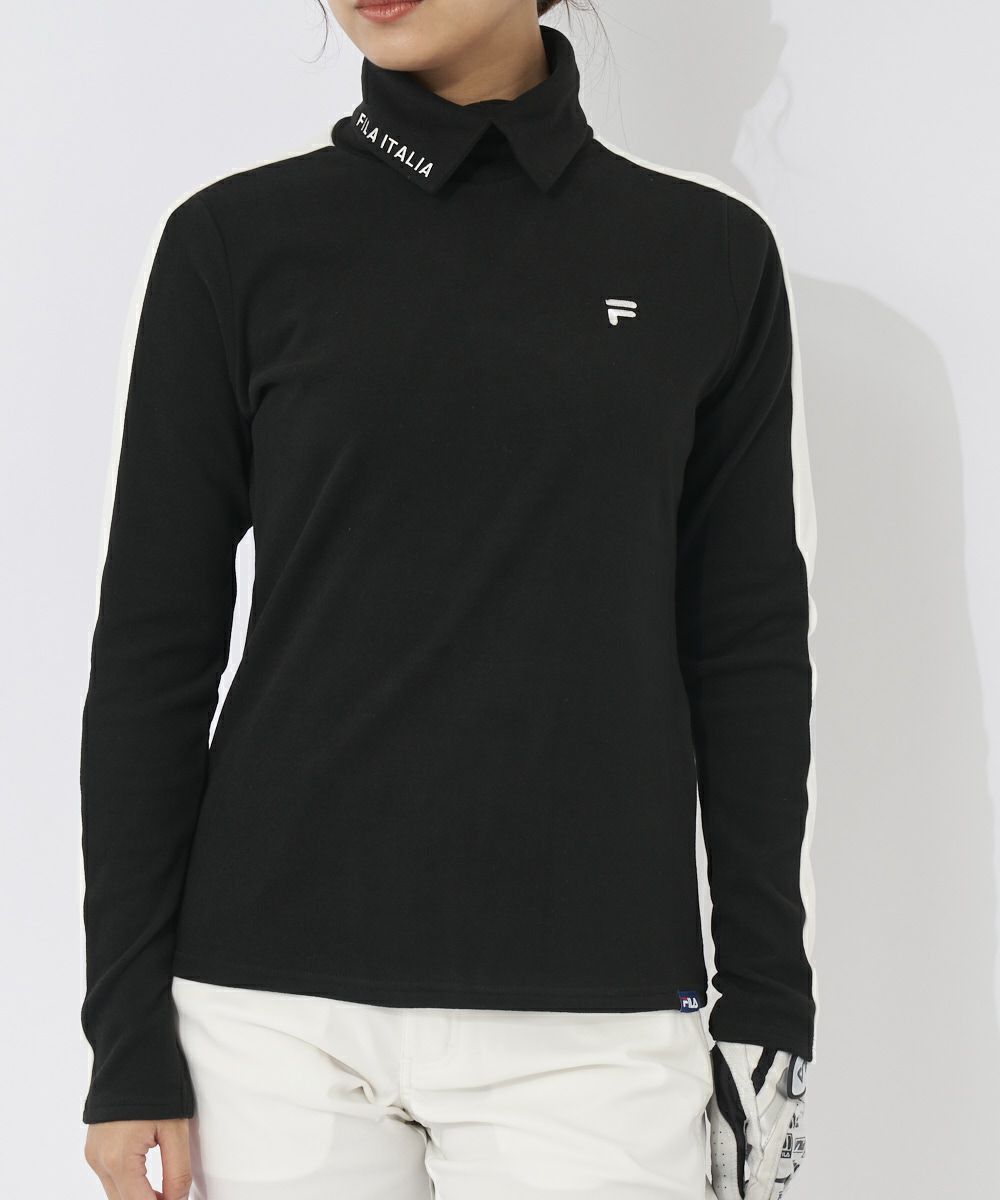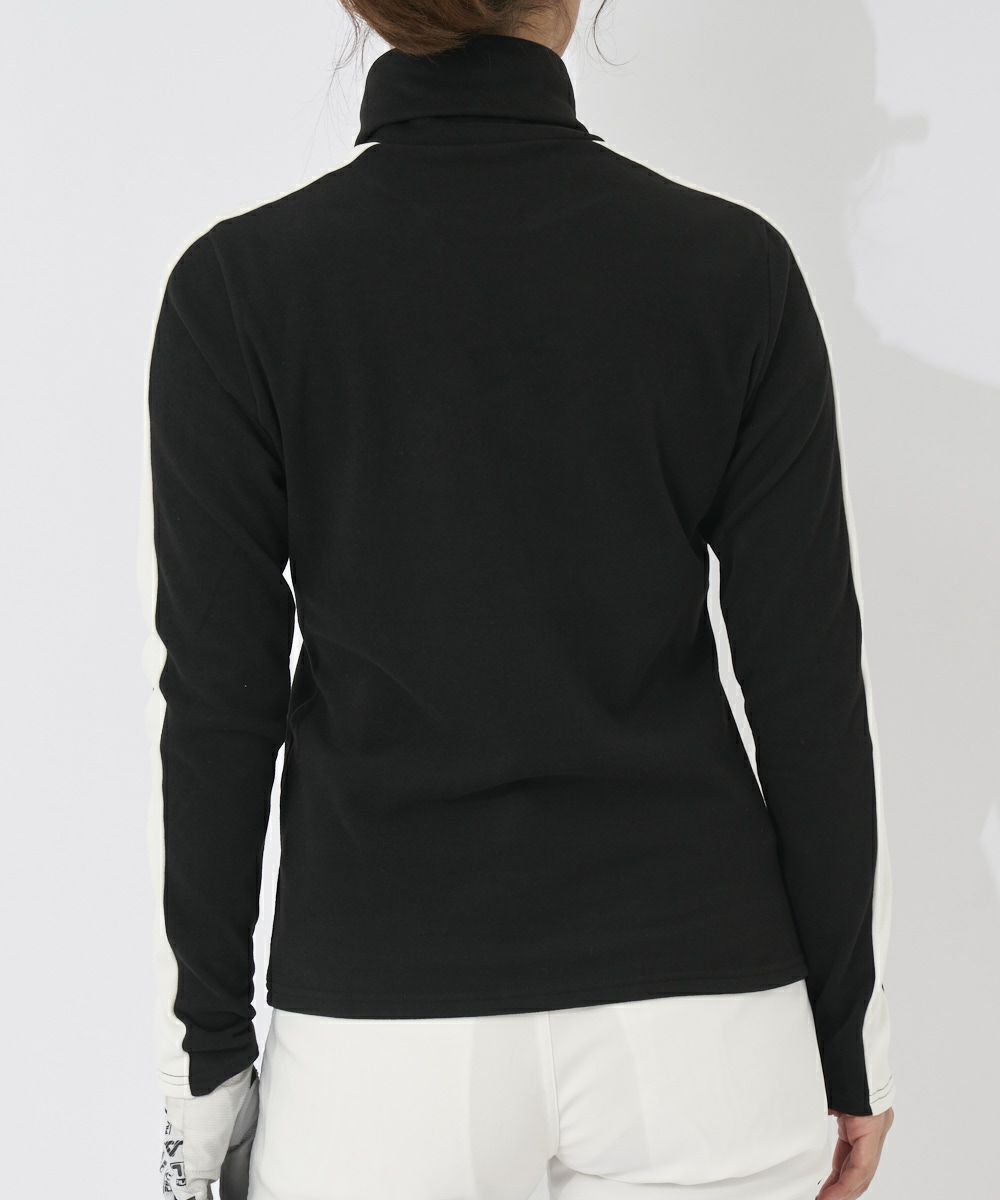 袖のライン切替がアクセントになっており、スポーティーなイメージを取り入れた暖かタートルネック。