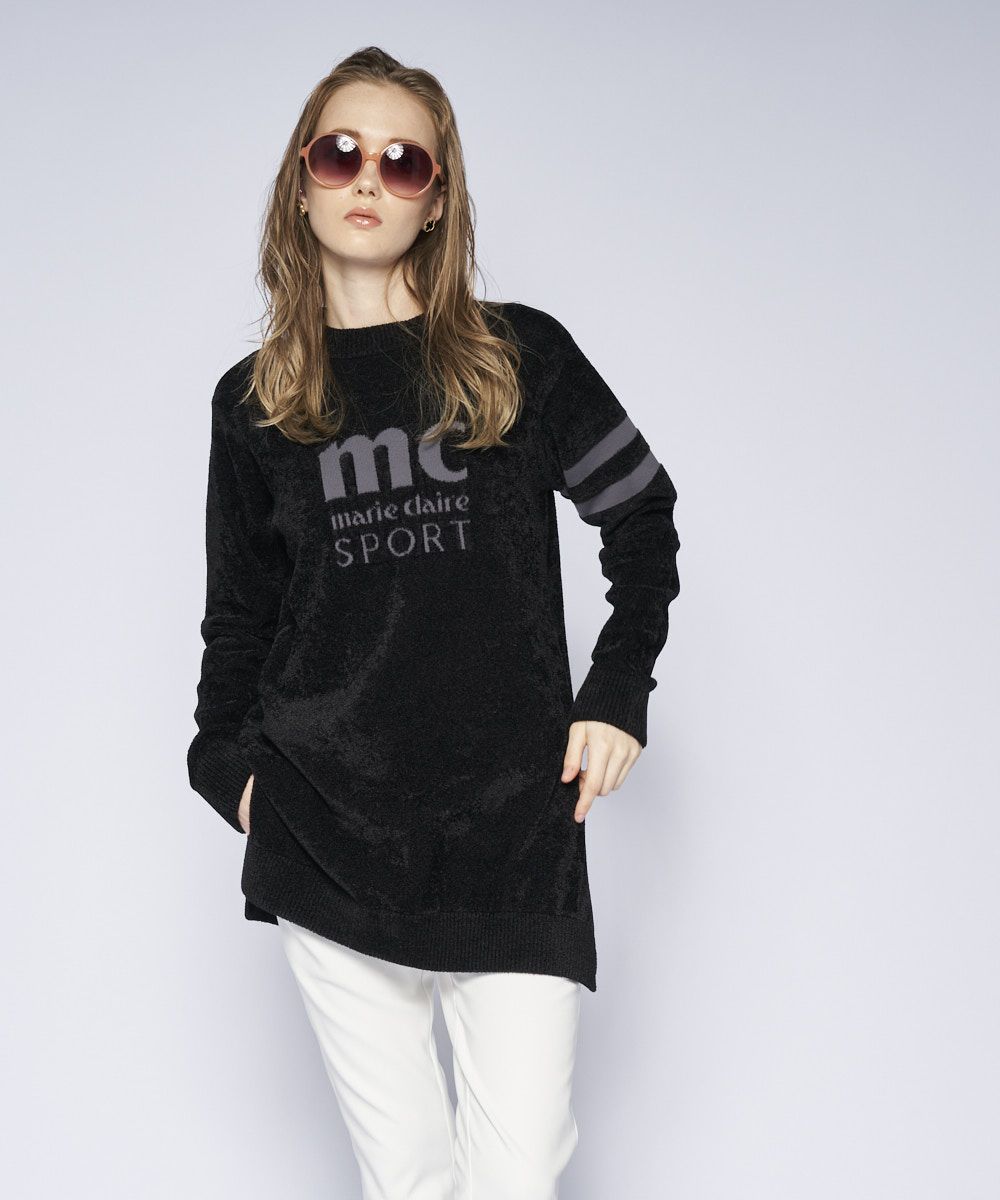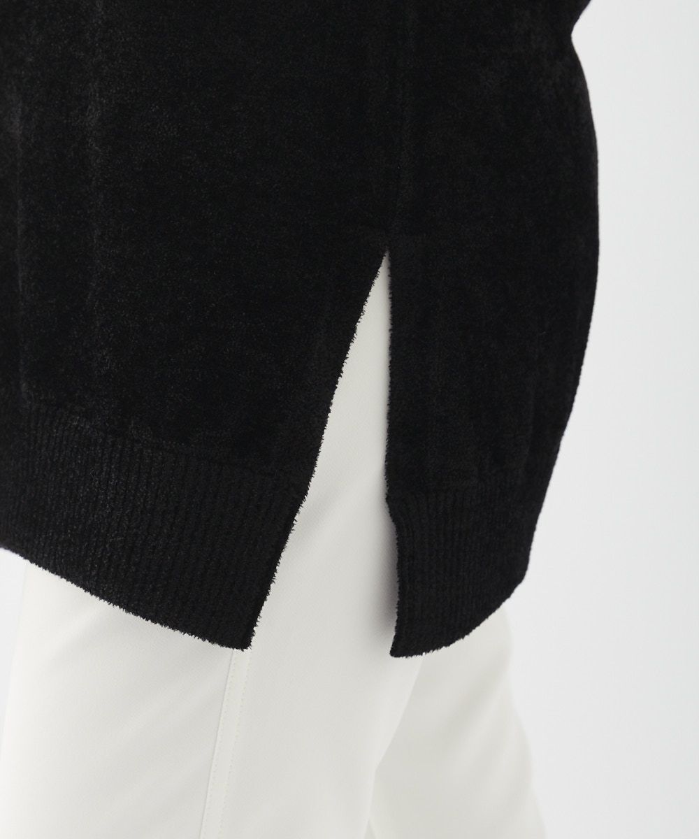 柔らかい手触りのベロアのようなニットを使用した、チュニック丈のセーターです。