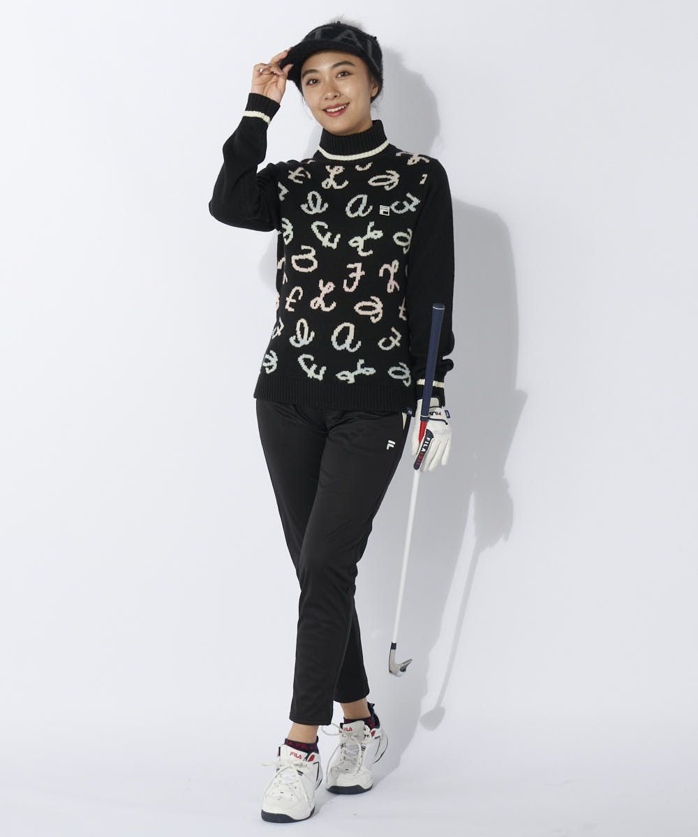 優しい色合いの段染め糸を使った柄がデザインポイント。スタイリングのアクセントになるハイネックセータ ーです。肌触りが良くストレッチ性のあるニットを採用。