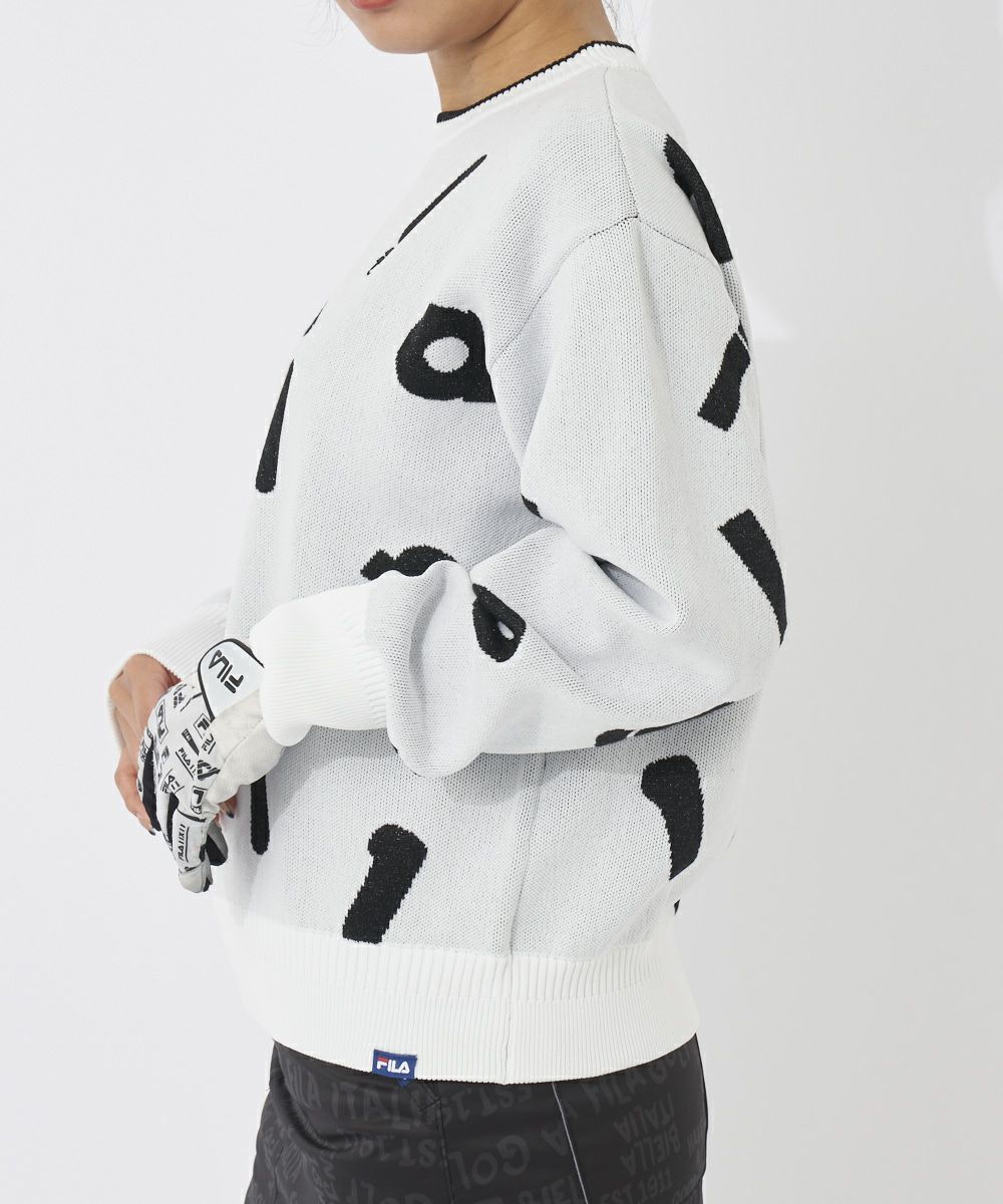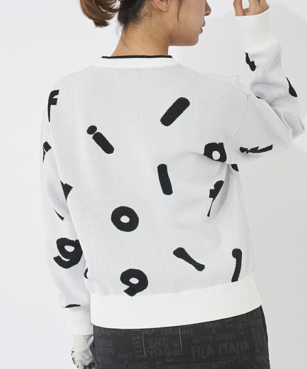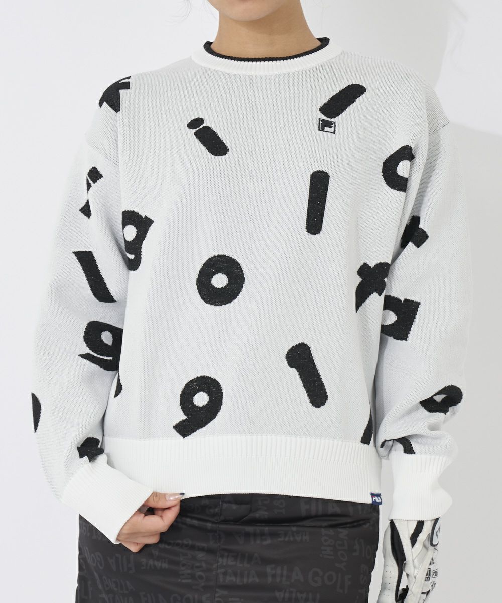 ポップなデザインが前面にあしらわれたクルーネックセーター。