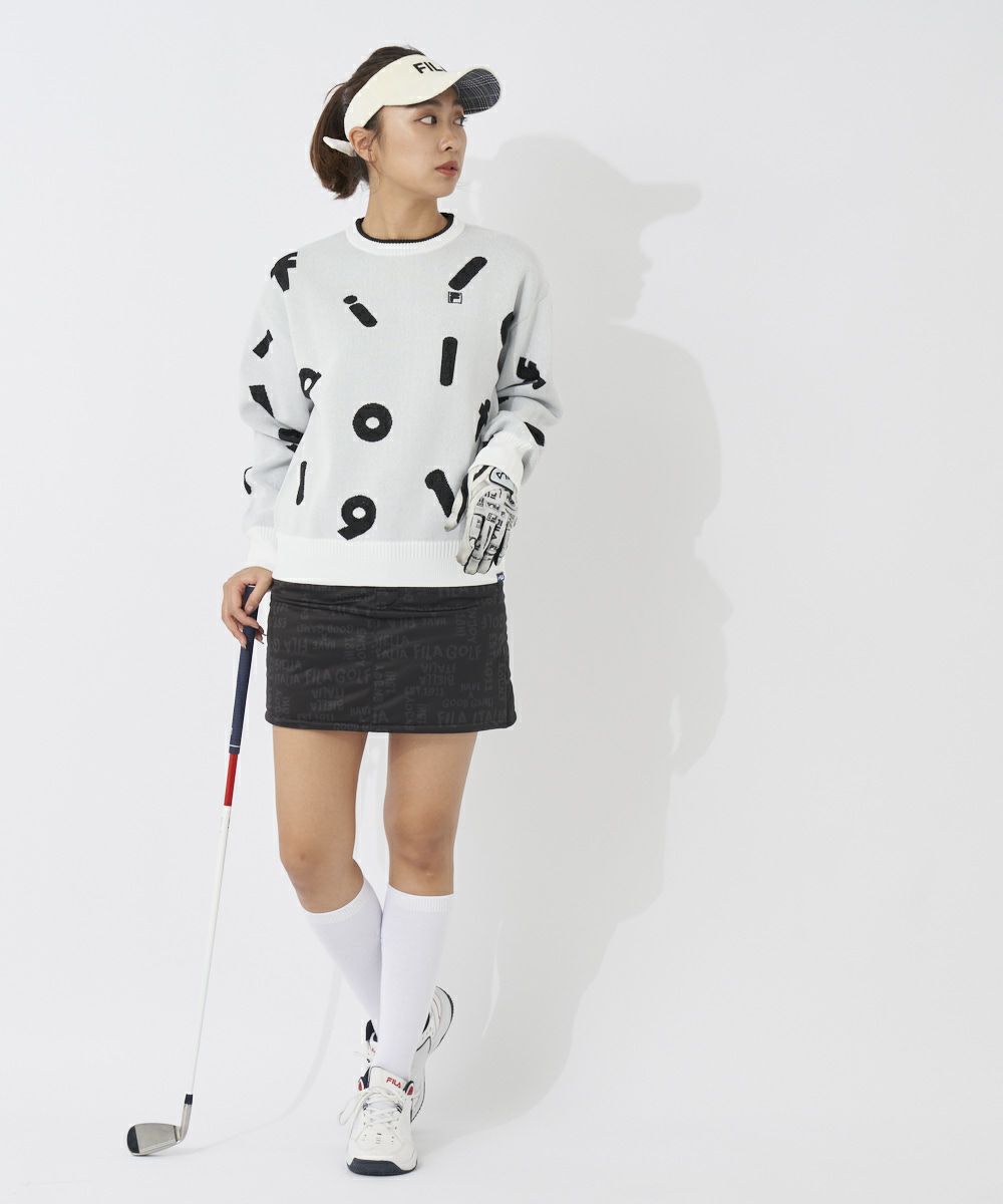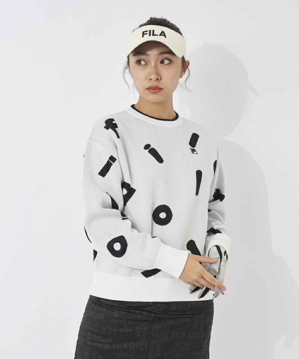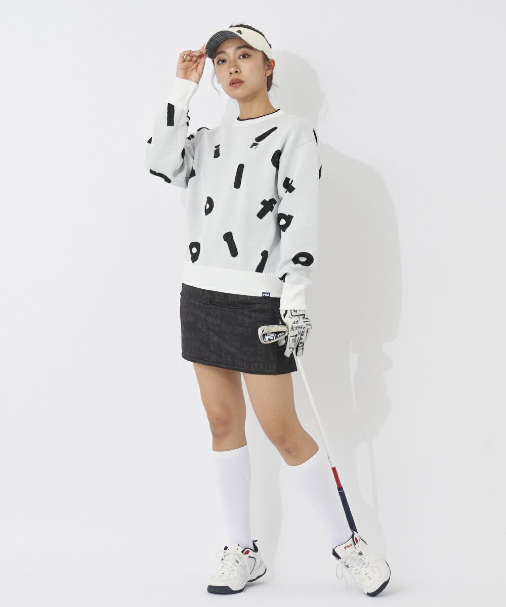 ポップなデザインが前面にあしらわれたクルーネックセーター。