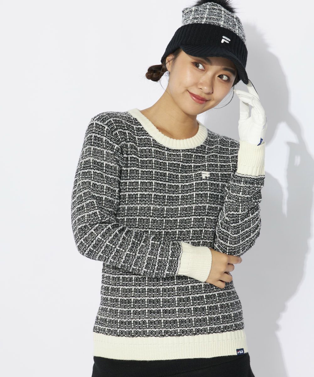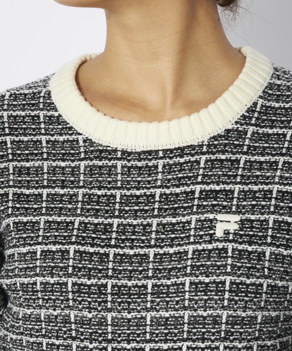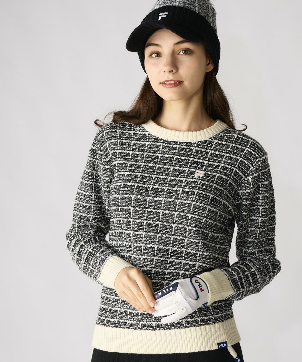 表面感のあるツイードライクな編地がかわいいクルーネックニットです。コーディネートのアクセントに 。同素材スカートとのセットアップコーデがおすすめ!