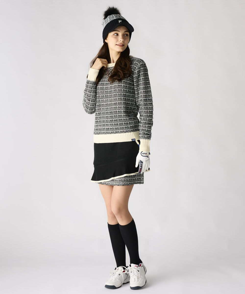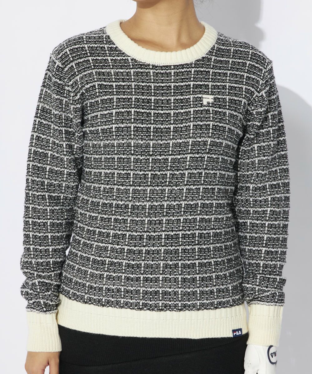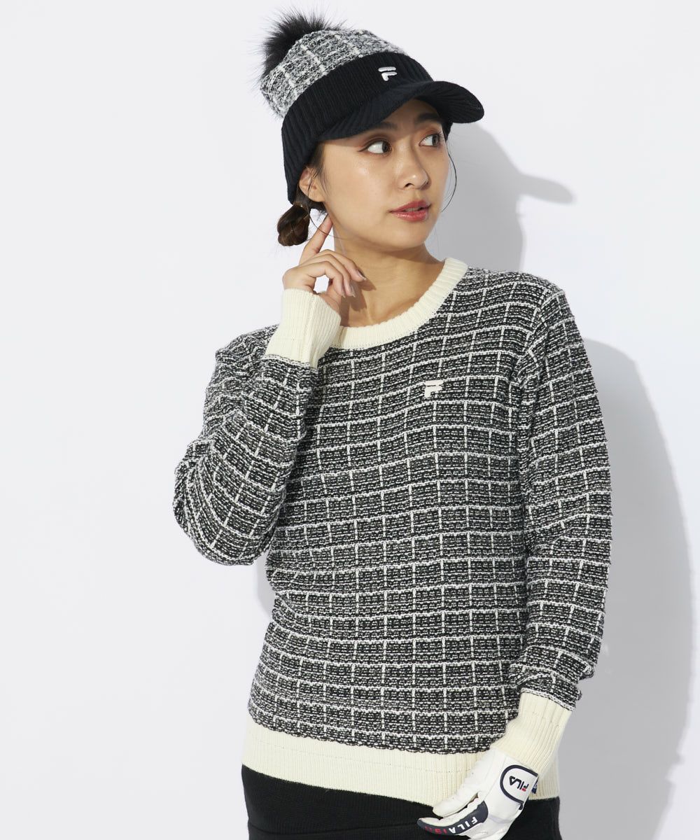 表面感のあるツイードライクな編地がかわいいクルーネックニットです。コーディネートのアクセントに 。同素材スカートとのセットアップコーデがおすすめ!