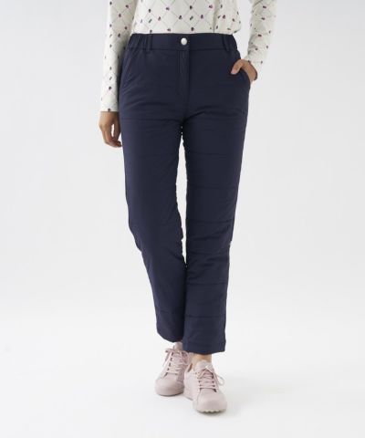 暖かさが欲しいところに薄中綿を使用し動きが欲しいところにはストレッチ性のあるダンボールニットを使用しています。冬ゴルフにピッタリのパンツです。