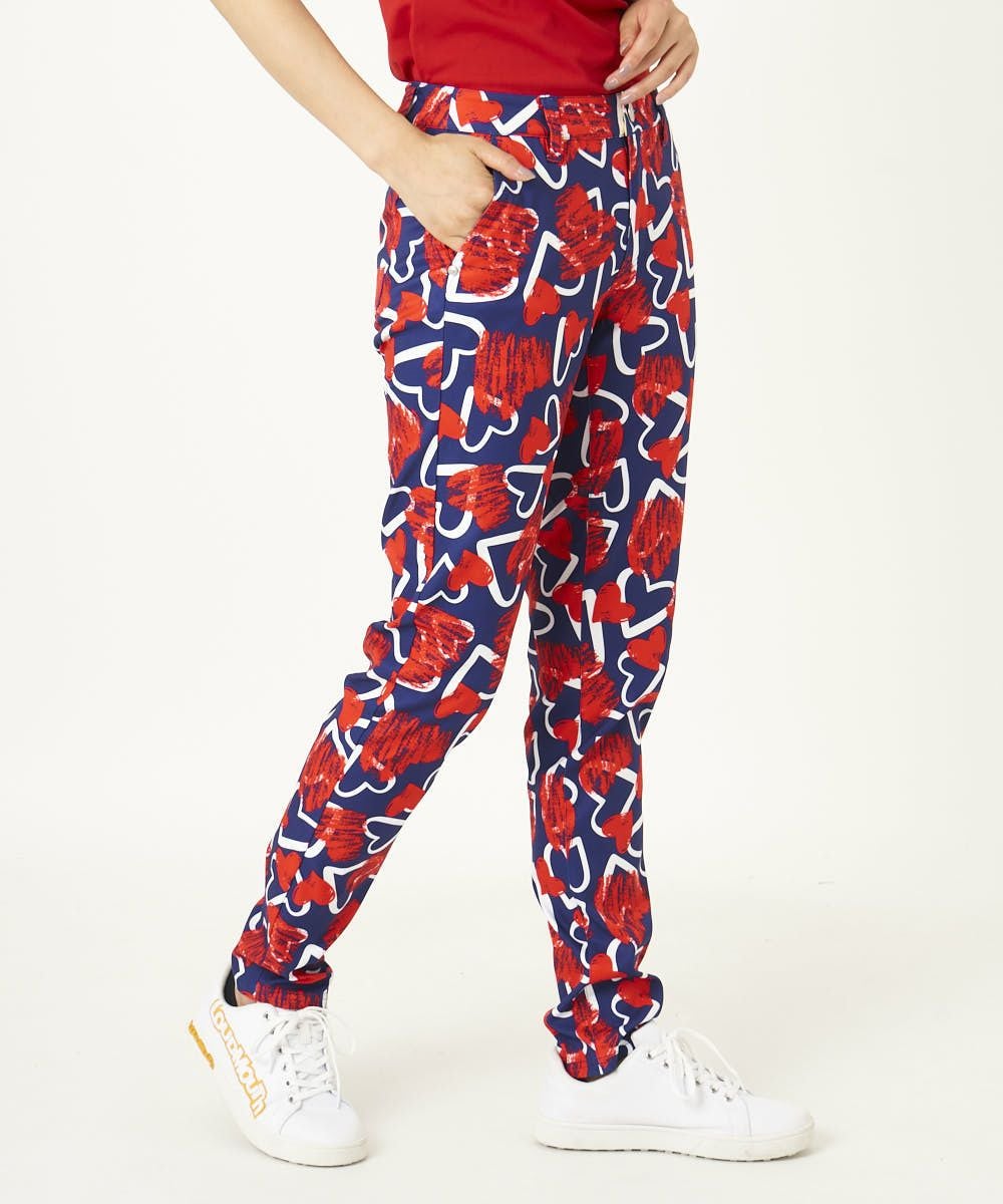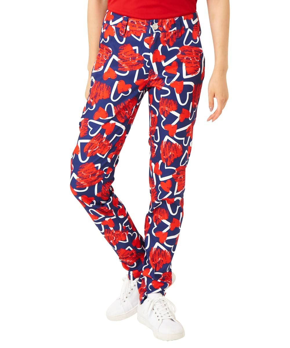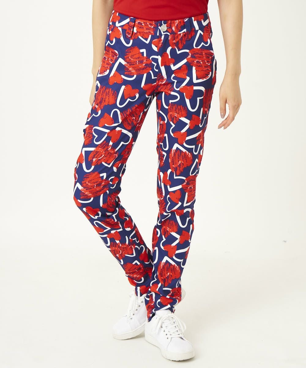 レディース ロングパンツ スクリブルハーツネイビー