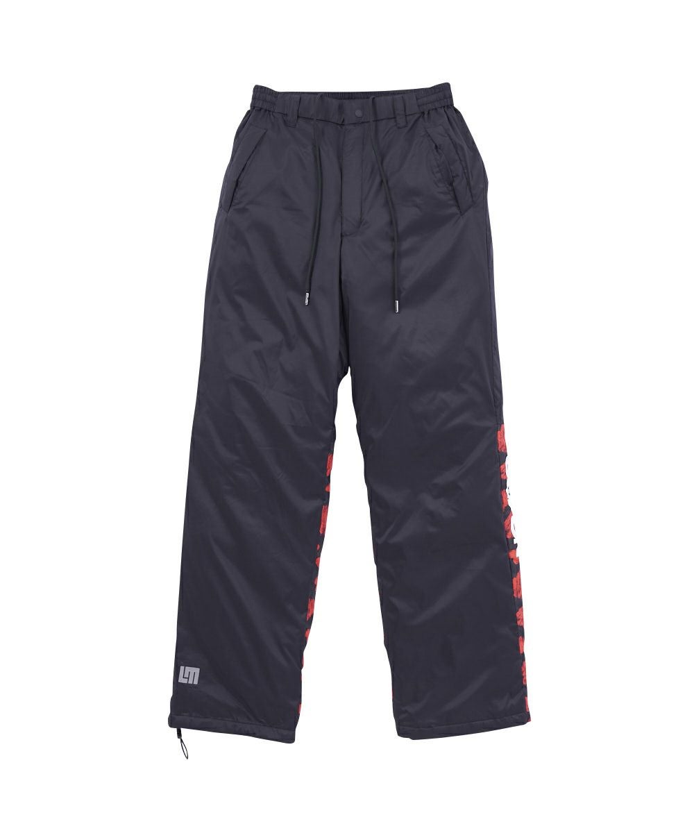 ラウドマウスらしいプリントパーツがデザインアクセントのダウンパンツ。