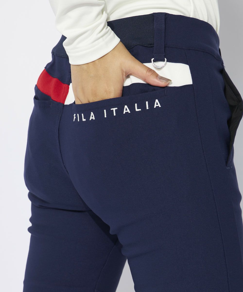 ストレッチ性に優れた、肌触りの良い裏起毛のツイル素材を採用。ヨーク部分の配色切替でバックスタイル にアクセントをつけてかわいく仕上げています。後ろポケットは、すっきりとしたシームポケット仕様。